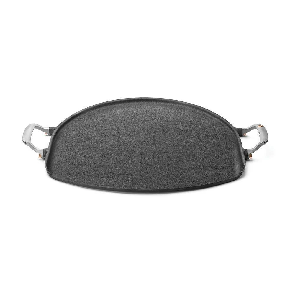 Cook pizza like a pro in the oven or on the grill with a pizza iron. Cast Iron is renowned for its heat retention and provides a blazing hot surface to encourage dough rise. This beautiful cast iron piece with forged steel handles goes from grill, stovetop or oven to the table with no problem. Perfect for pizzas and flatbreads, pancakes, eggs, steaks, burgers, fish, you name it.