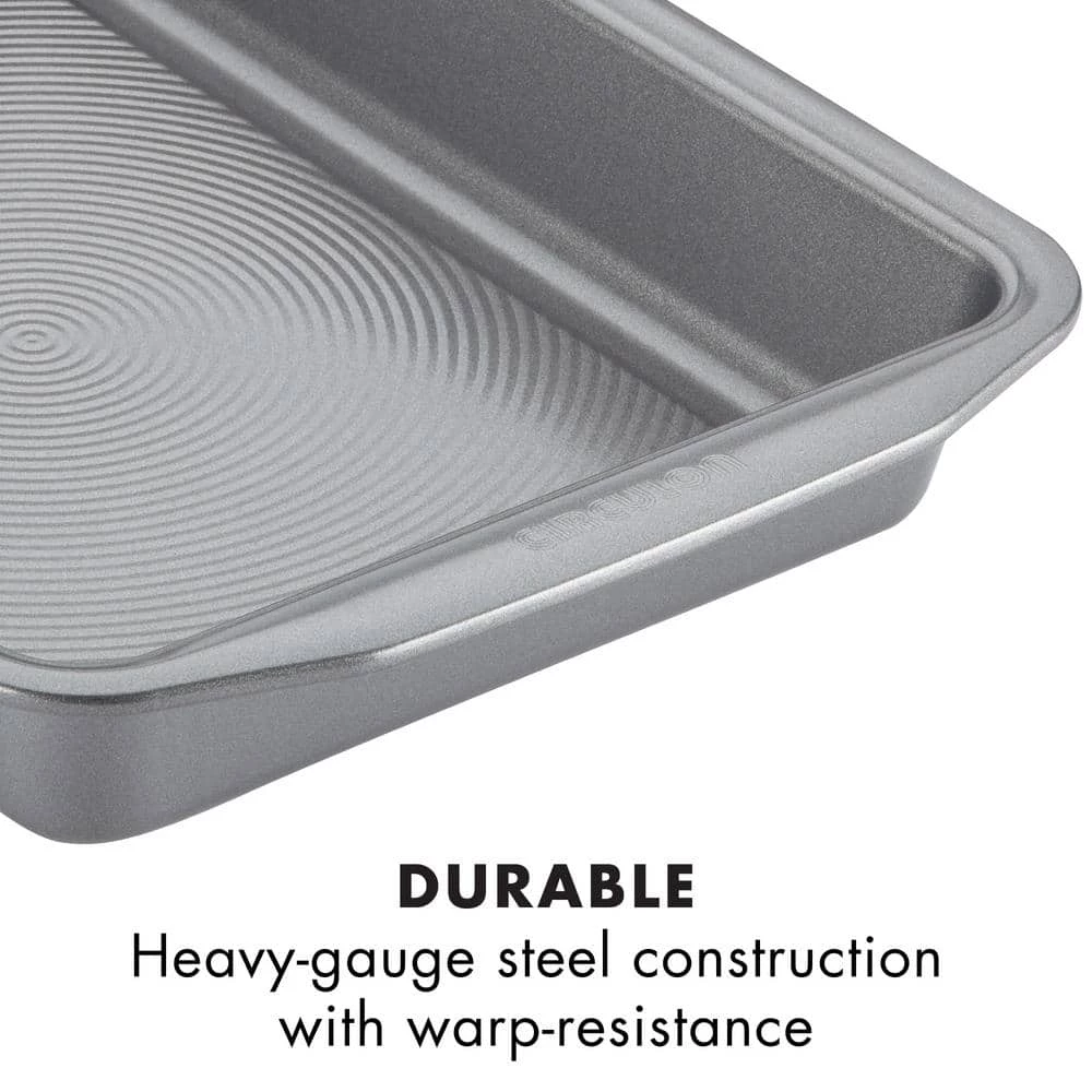 - BAKEWARE STANDS UP TO TIME: Heavy-duty steel construction offers uniform heat distribution and pans’ warp-resistant rolled edges provide extra strength