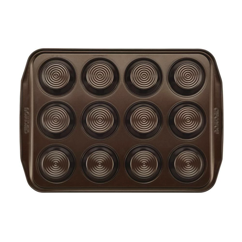 Superior nonstick technology and solution-driven design set Circulon bakeware apart from other nonstick bakeware. The technology begins with raised circles on the baking surface that are coated with PFOA-free premium-quality nonstick. The rolled-rim pan design includes distinctive chocolate brown color inside and out and wide handles for plenty of grip, even with bulky oven mitts. Mix all this together and that’s the recipe for lifelong baking enjoyment, Whether you’re a regular muffin maker or just a once-in-a-while cupcake baker. And once the baking done, all that exceptional nonstick technology keeps the cleanup easy. The pan is ideal for everything from made-from-a-mix cupcakes and start-from-scratch muffins to mini-quiches and other savory treats. And by reducing the need for oiling and greasing the bakeware interior, this muffin pan is ideal for delicious, healthy gluten-free cupcakes for the kids or a batch of densely-delicious hand-milled-bran muffins. Oven safe to 450°F, this bakeware brings the Circulon kitchen-time-and-energy-saving approach to baking home. And with a Hassle-Free Lifetime Guarantee, the muffin pan truly delivers for the well-rounded life.