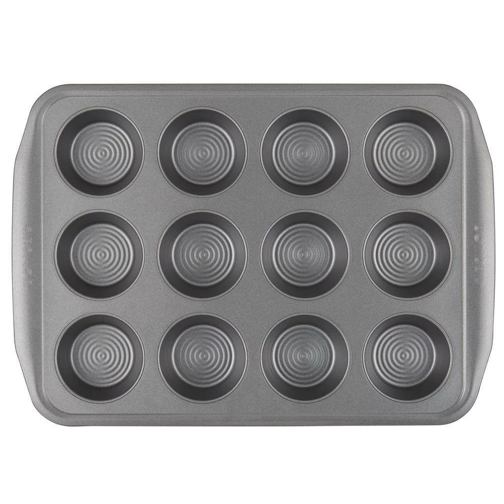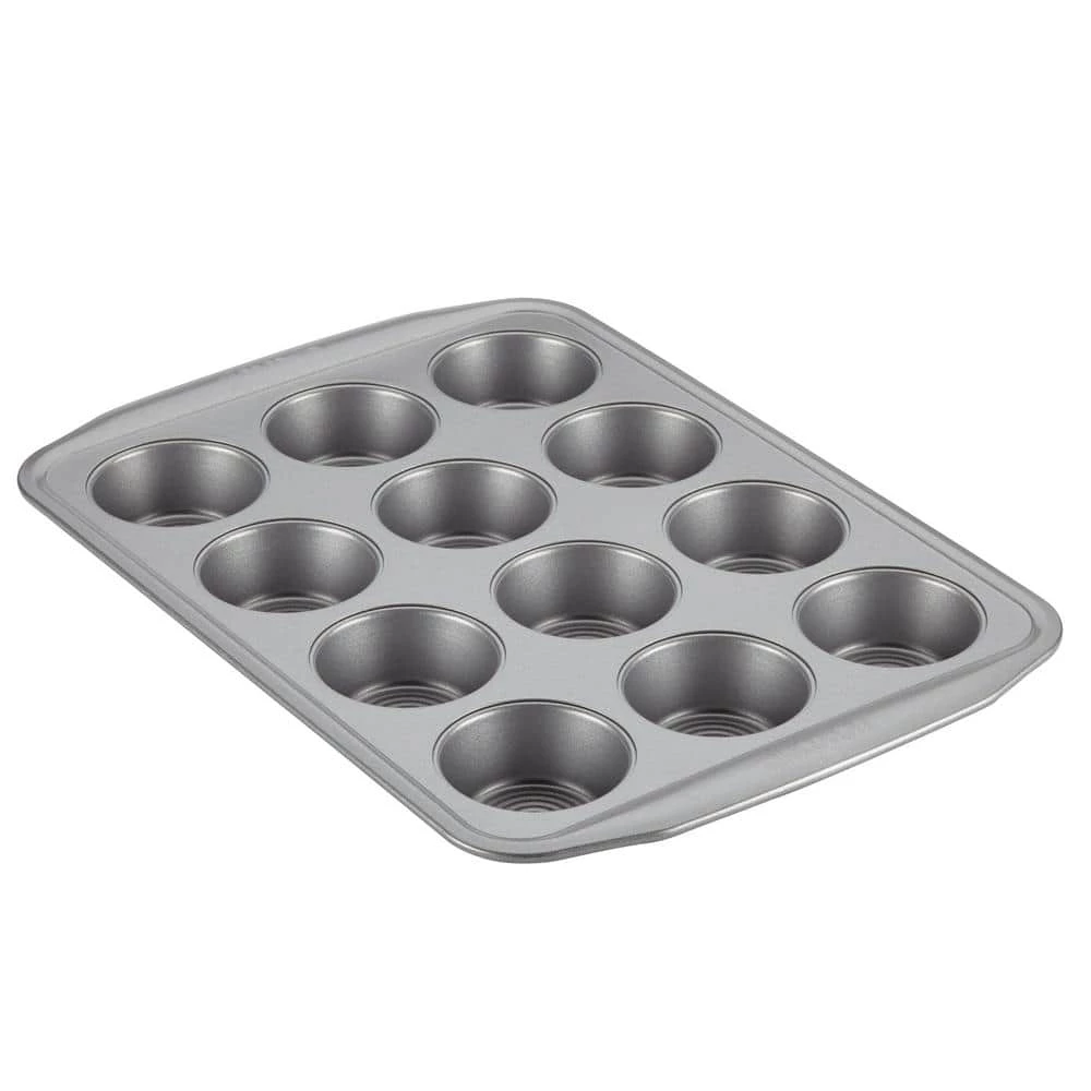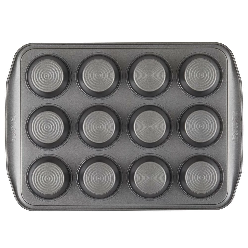 - The muffin pan features heavy gauge steel construction with warp-resistant, rolled-rim design for beautiful, long-lasting baking performance