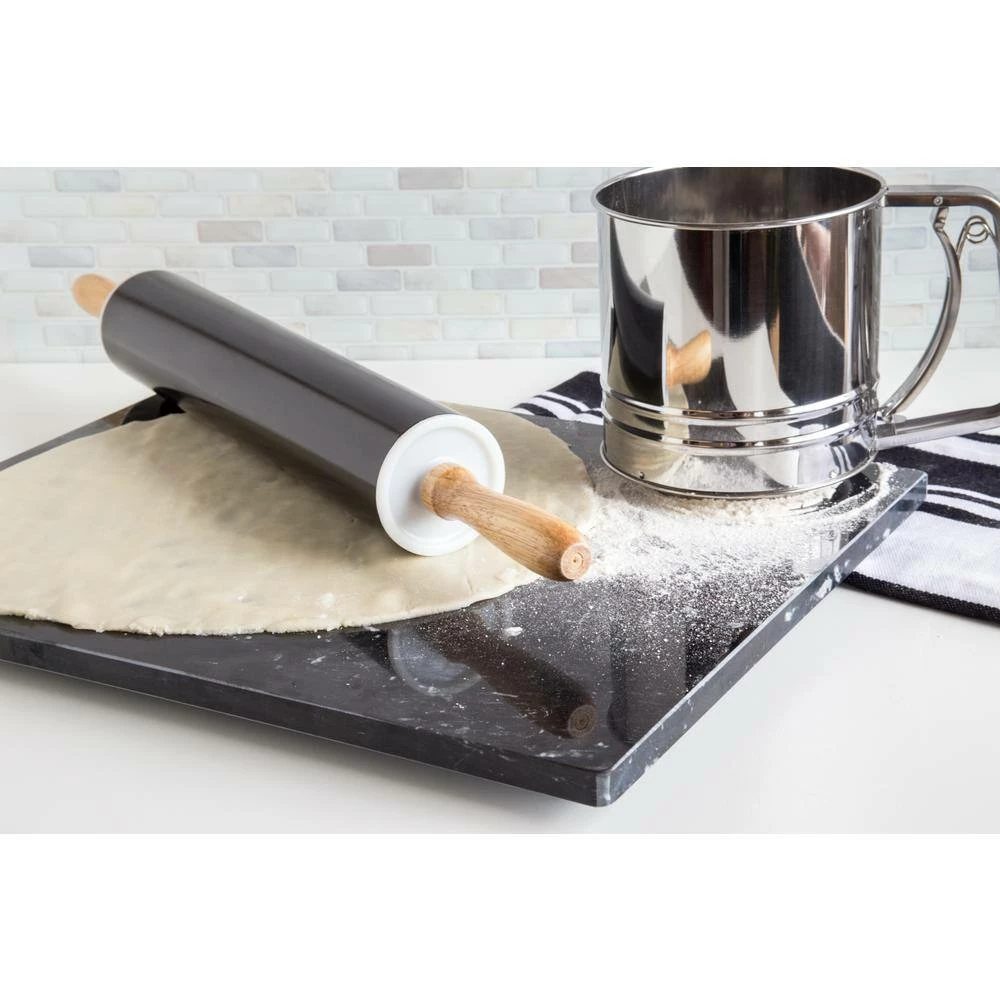This beautiful Black Marble Pastry Board is perfect for any baker! Cool and smooth, marble provides an ideal surface with its natural non-stick properties. No need to add an abundance of flour down before rolling or kneading. Suitable for biscuits, pies, tarts, pizzas, pastries and many more. This board is elegant enough to be kept out on display in your kitchen when not in use. The board itself measures 1/2″ thick. Rubber feet on the bottom provide protection for your countertop. Exceptional results with any type of dough are promised with this marble pastry board!