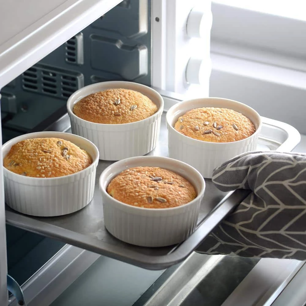 Make desserts sweeter with ramekins. The ramekin set, 4.3 in. is a perfect size for souffle, creme brulee, jams, dipping sauces, french onion soup, blueberry crumble. Also good for packing spices and ingredients while you cook, serving for condiments and sauces, presenting quiches, and other small courses. It can be used in the microwave or oven, and safe for the dishwasher and freezer.