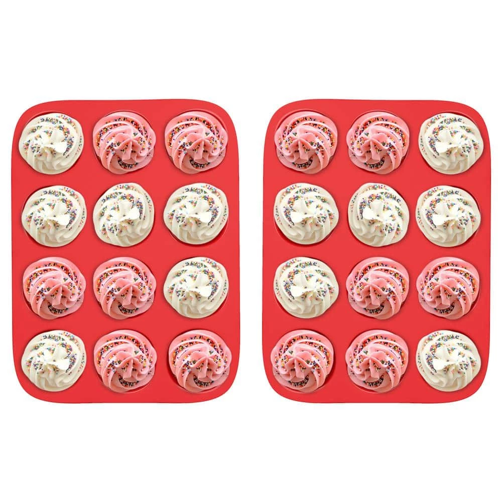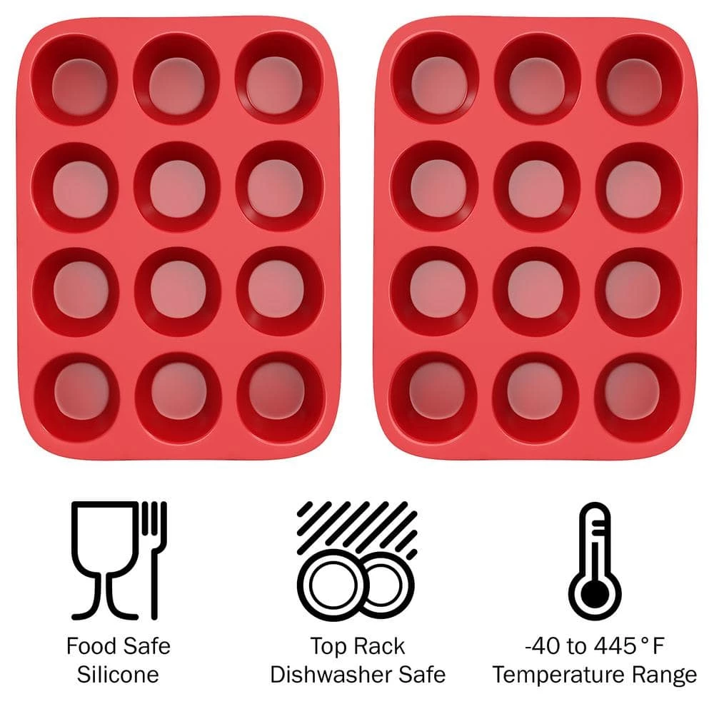 - Product details -materials: food-grade silicone, dimensions: l 13 in. x w 10 in. x h 1.5 in. set of 2, baking temperature tolerance: -40 to 445-° f 0-230-° c, note: the-cupcake siliconemold set may be shipped separately, color: red