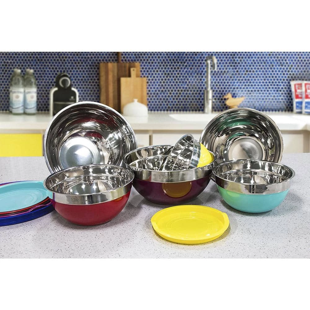 - 12 piece stainless steel mixing bowl set includes 6 beautifully crafted bowls in a variety of sizes and stylish colors