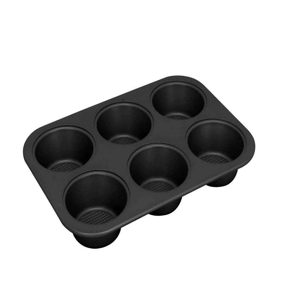 Turn out beautiful muffins and cupcakes for any celebration in this stainless steel 6-cup muffin pan. The textured pattern on the bottom helps your muffins slide out with ease. Can also be used with cupcake liners, ideal for parties. Non-stick coating inside and out. Sturdy construction and quality materials ensure dishwasher washing.
