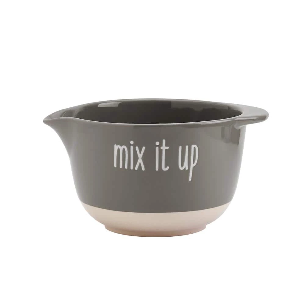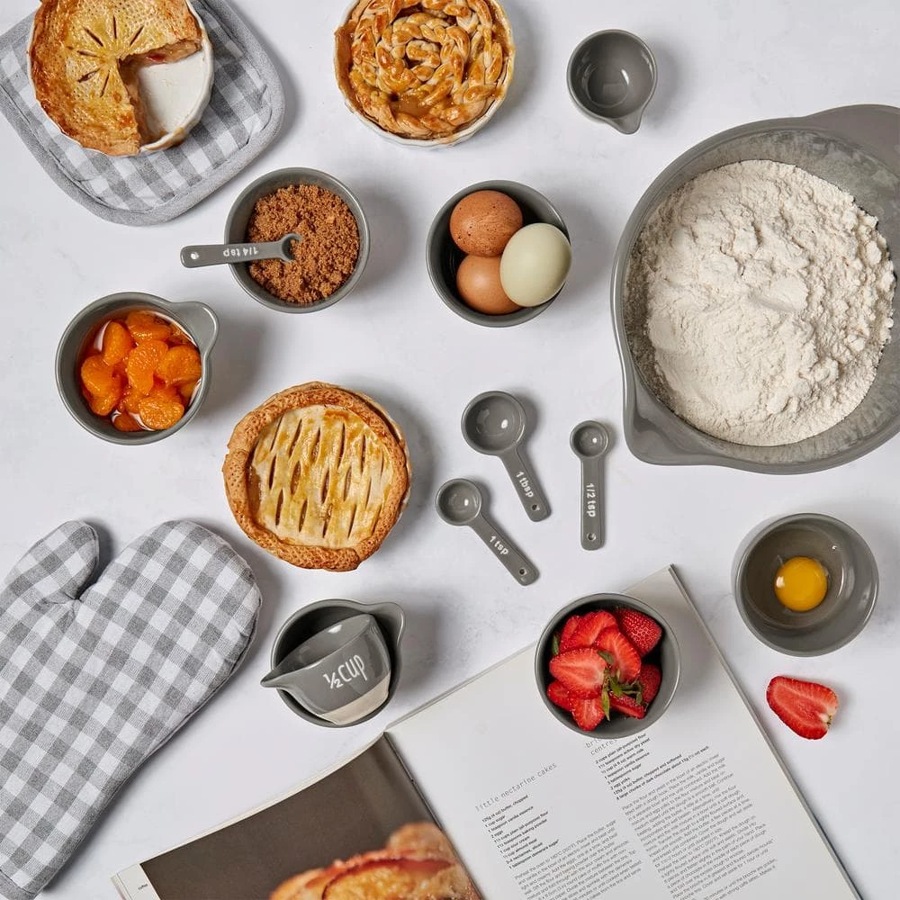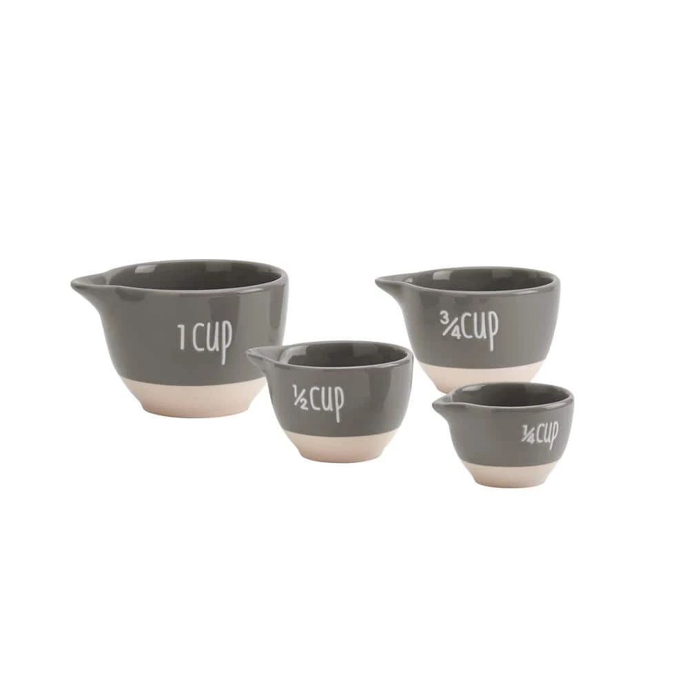 Add some fun to your baking essentials with this charming gray stoneware 13-piece mix and measure set, featuring a large 4.75-quart mixing bowl, four prep bowls, four measuring cups, and four measuring spoons. Stylish and simple to use, the measuring cups feature spouts for easy and spill-free pouring and can nest together for efficient storage in the kitchen. Durable and dishwasher safe for quick and easy cleaning, this fun and functional set is perfectly designed for modern kitchens.