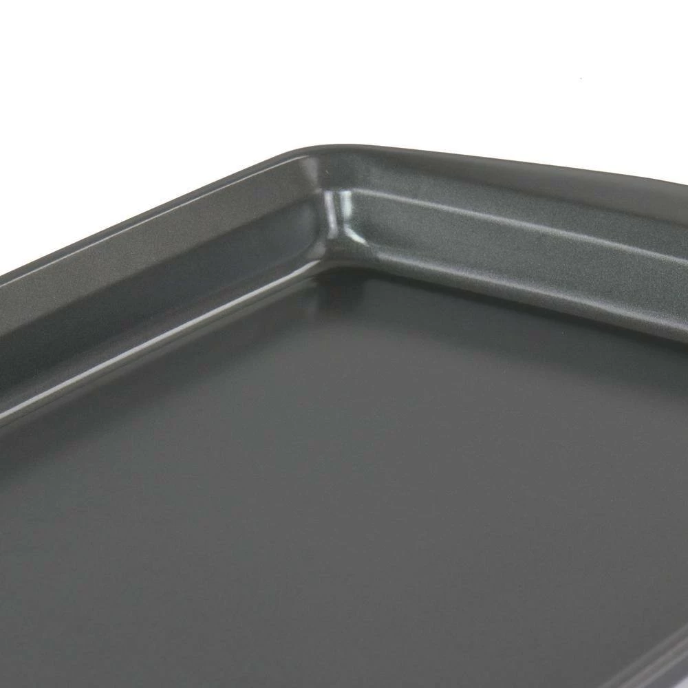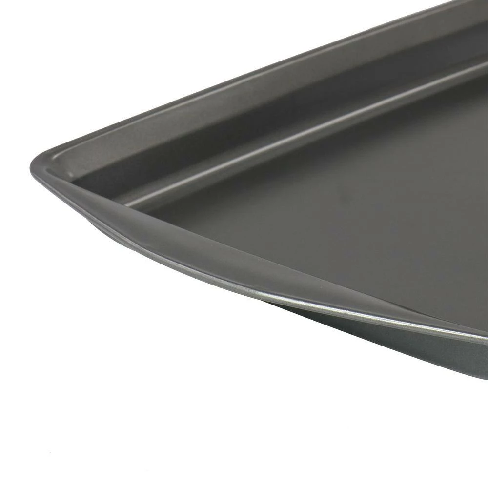 The Gibson 15 Inch Baker’s Friend nonstick Steel Baking Sheet is the perfect way to treat your guests with delicious food and treats. Make all your favorite type of baked goods such as chicken, fish, veggies and desserts such as cookies, etc. Featuring a non stick surface for easy release and clean up surface makes it easy to bake. The durable steel construction is made to last. Place your bake ready foods in the oven and enjoy them however you like.