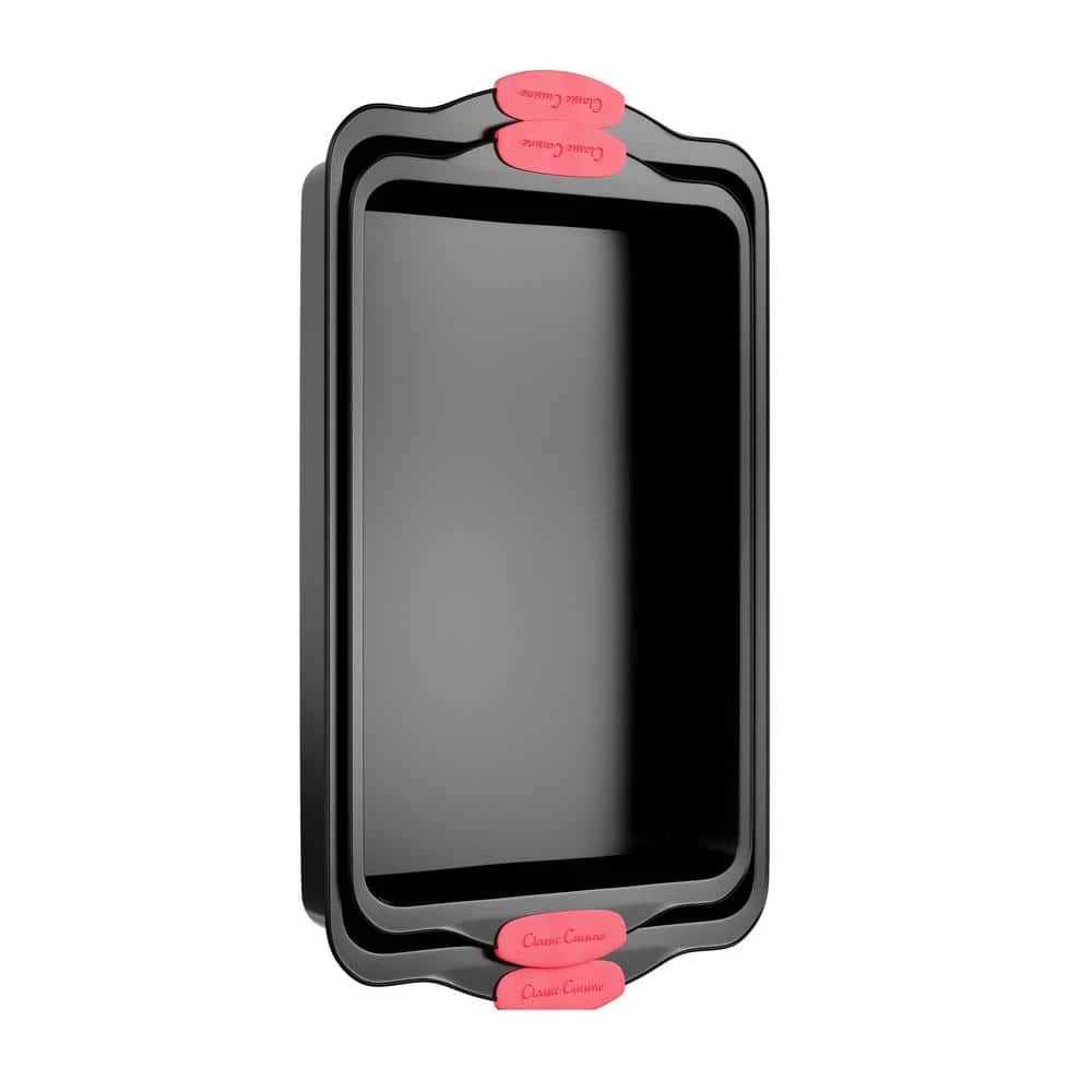 The 2-Piece Baking Pan Set by Classic Cuisine is a kitchen necessity for every home cook! With a large 9″x 13″ pan for cakes, bars or brownies, and a 10″x 14.5″ pan for roasts, lasagnas or veggies, this versatile cookware is perfect for every recipe. The silicone handles provide a safe and secure grip when pulling the hot pans from the oven, while the nonstick surface ensures that none of your delicious dinners and desserts will get stuck to the pan. These well-crafted and durable rectangle baking pans are essential bakeware for your home and will also make a fantastic and thoughtful gift for birthdays, holidays, housewarmings, weddings, graduations, or any occasion!