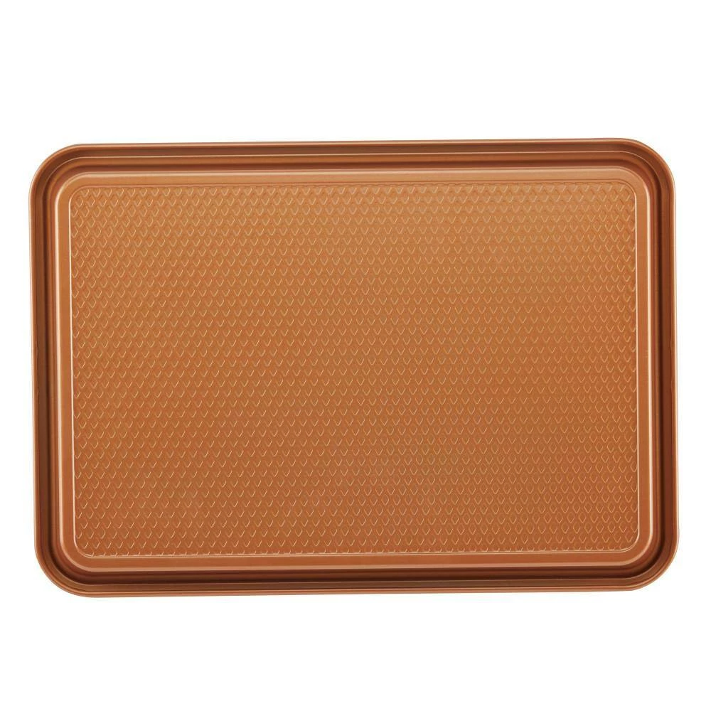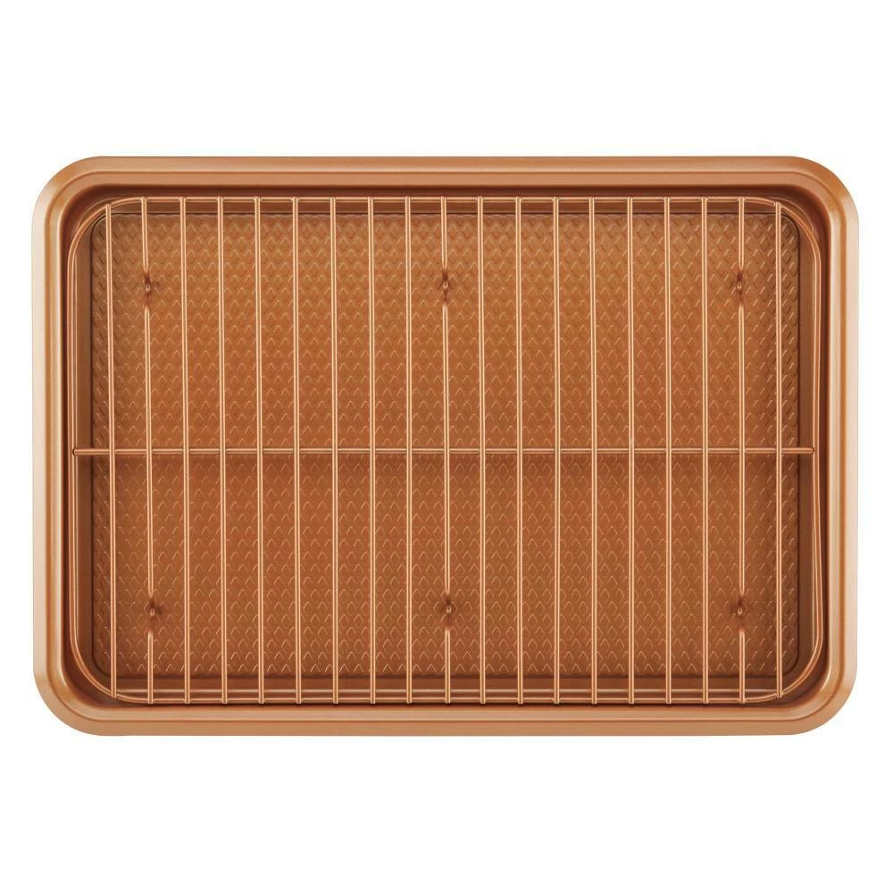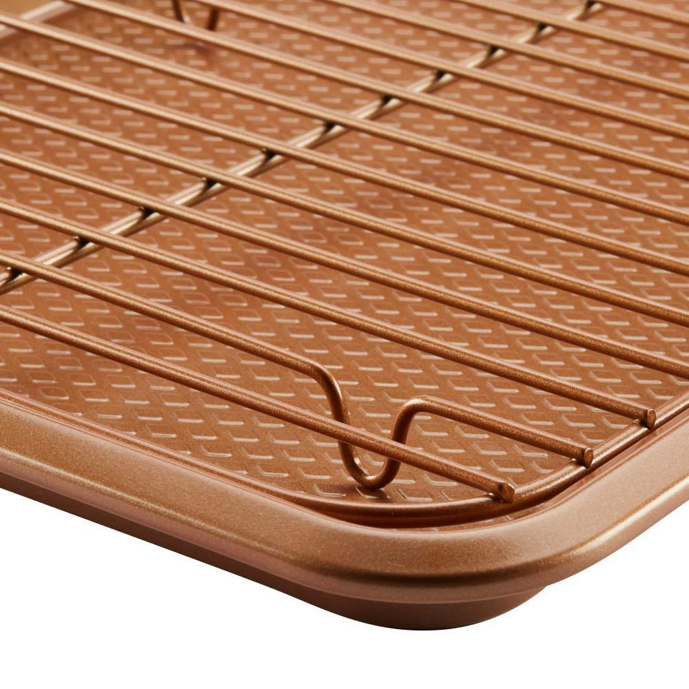 - Heavy-duty, high-performance steel construction boasts extended edges for easy handling in and out of the oven; set includes matching cooling rack
