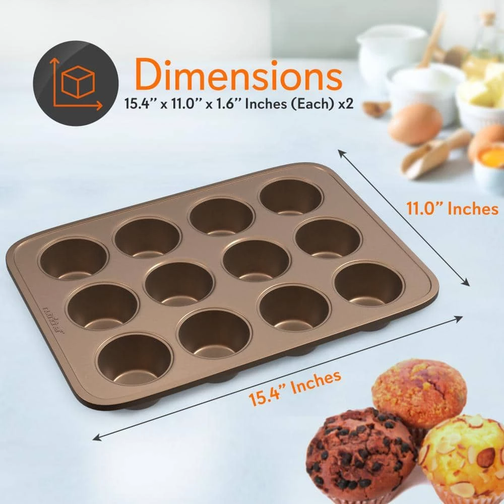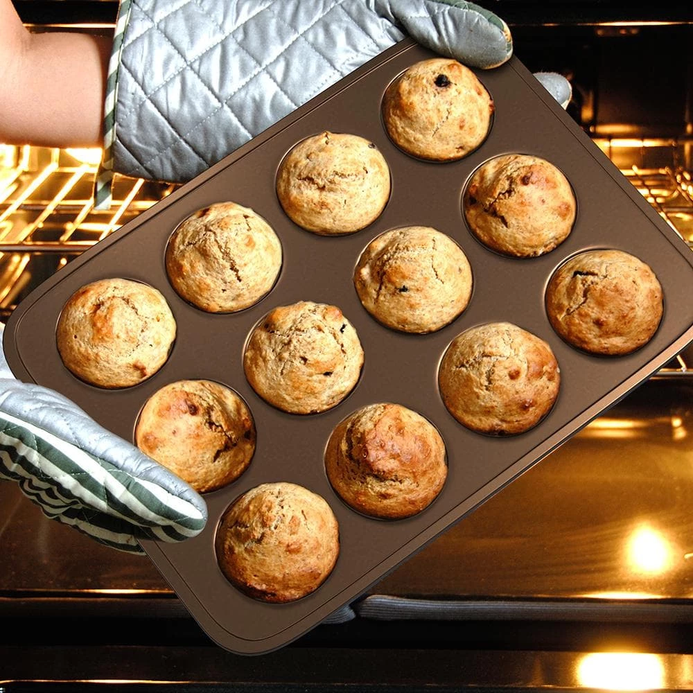 NutriChef was created on the principle that healthy home cooking should be attainable to all, regardless of skill level and economic status. Starting in 2014, we noticed the disconnect in our lives and in the lives of those around us. We were so busy, always rushing forward and our health and personal lives suffered. We needed to find some way to slow down and put our health first, all without sacrificing convenience or taste. Could we somehow create healthier versions of our favorite foods, easily in our own kitchens. The answer was a resounding yes and NutriChef was born. What’s in the Box: 2-oven muffin pans. Technical Specs: temperature resistance: Up to 446° Fahrenheit (230° Celsius) metal tray thickness: 0.6mm. Construction material: engineered carbon steel metal alloy. Muffin pan size (L x W x H): 15.4 in. x 11.0 in. x 1.6 in. (each).