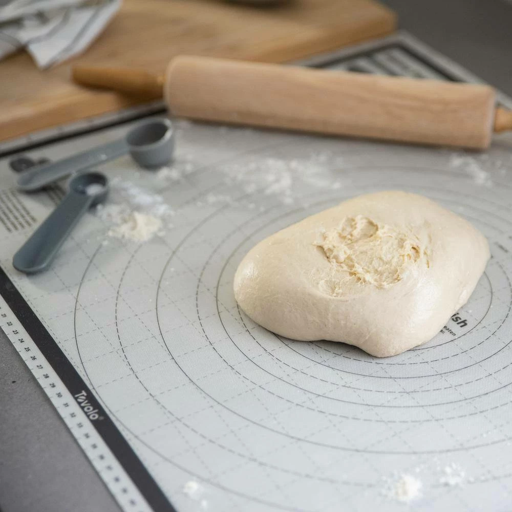 The Tovolo TrueBake Sil Pastry Mat w/ Reference Marks is naturally non-stick and protects pans from baked-on grime. The thin mat replicates the baking surface while providing enough insulation to prevent burning. Made of high-heat resistant silicone, this baking mat is heat-resistant up to 450 degrees Fahrenheit. This multifunctional mat can be used to create a non-slip countertop baking station; it can be used in the oven, as well as the microwave. A solid border helps to establish a clear working area, while dotted-line grids provide reference marks for accurate sizing and placement, making it easy to follow recipes with exact precision. Not only will this silicone baking mat protect pans from natural wear and tear, it will also assist in even baking. Bake on it, wipe it down, and roll it up for easy use and easy storage.