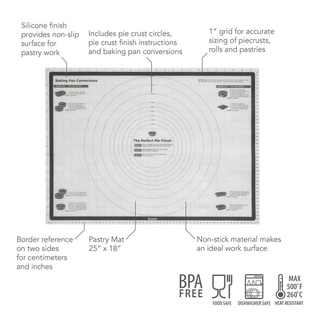 - Grid Lines: An imprinted grid creates one-inch lines for spacing, to help you to measure the size of your baked goods, so every one comes out looking uniform and perfect.