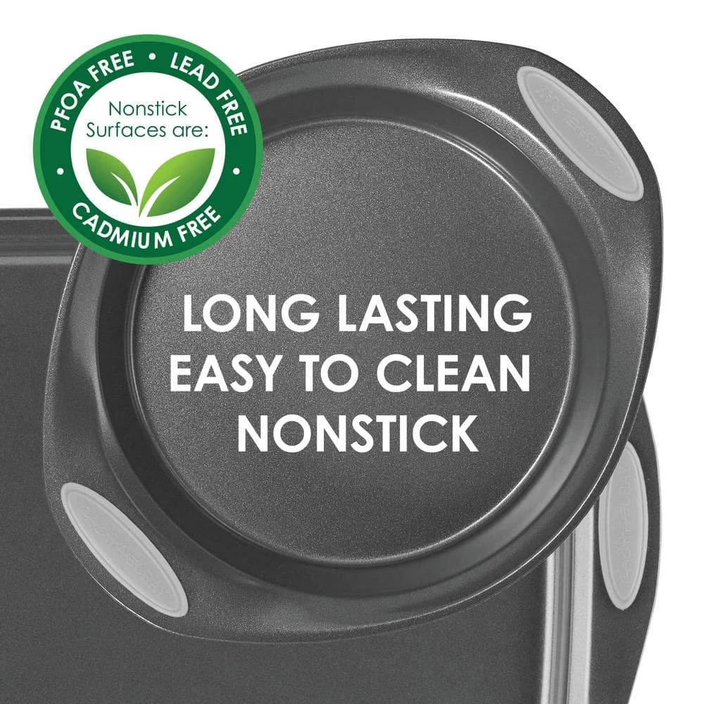 - Long-lasting cookie pan set: baking pan set is made from durable steel that resists warping; long-lasting nonstick provides excellent food release and easy cleanup