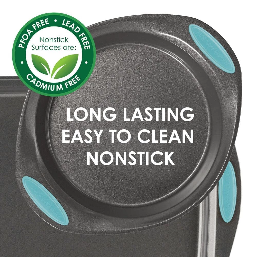- GET A GRIP: Bold-colored, extra-wide grippy handles on the pans provide a confident grasp and are oven safe to 500 degrees F FEEL GOOD BAKING SET: A portion of the proceeds goes to Yum-o.(r), Rachael’s nonprofit that helps kids and parents develop healthy relationships with food