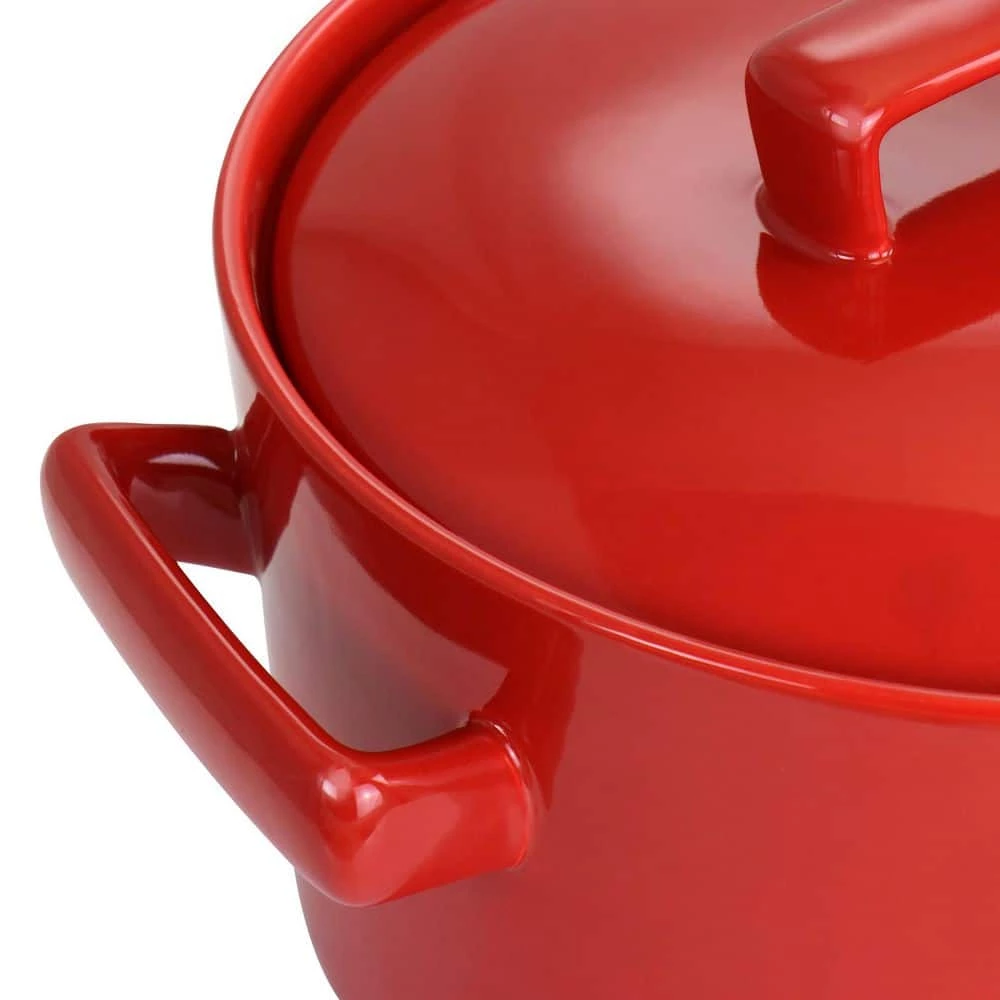 Bring comfort into your home with the MARTHA STEWART 3 qt. Covered Casserole. Its deep, round shape and generous 9.25 in. Dia provide ample space for a shareable meal – perfect for autumn or winter gatherings. The lid is oven-safe and seals in flavors and moisture during the bake, while the handles prompt easy oven-to-table presentation. This Casserole is not intended for stovetop use but is perfectly safe to use in the dishwasher and microwave as needed.