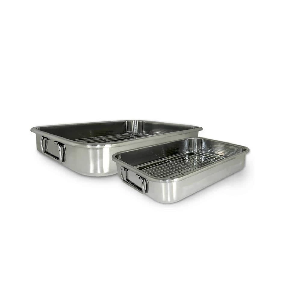 Constructed in durable stainless steel, these pans come in two popular sizes for your convenience. Just the right size for multi-layered lasagnas, and includes two chrome racks for your favorite roasts. They have stainless foldable handles that make lifting in and out of the oven, safe and easy.