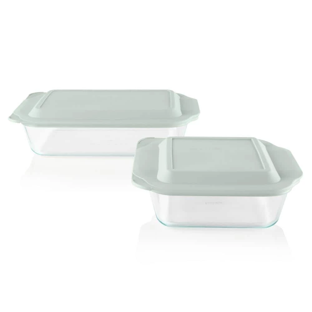 - Set includes: 9 in. x 13 in. with lid and 8 in. x 8 in. with lid