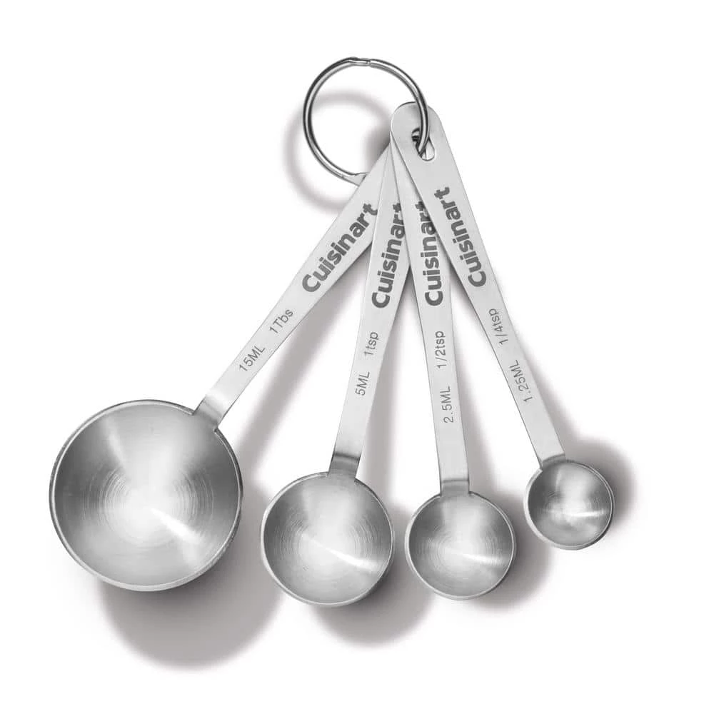 Cuisinart Stainless Steel Measuring Spoons. Set includes 3-spoons and storage ring. Long-lasting stainless steel. A necessity for any kitchen.