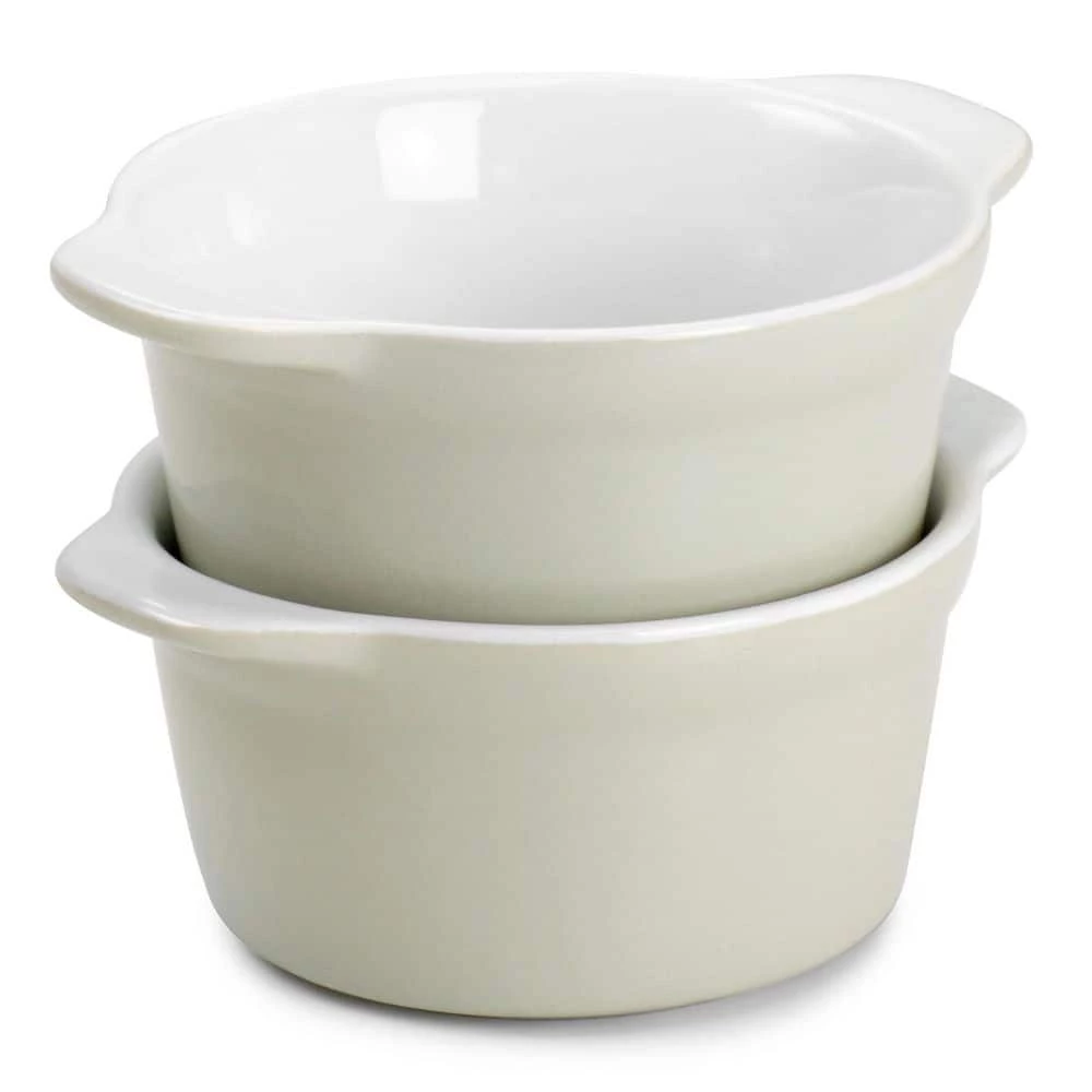 Bring some beautiful vintage flair into your kitchenware collection with these brilliant MARTHA STEWART 4 in. Ramekins. The 4 in. round design and durable stoneware construction makes them perfect for oven-to-table cooking and serving, especially for sweet treats like creme brulee or individual portions of casseroles or baked mac and cheese. The large, easy-to-grip handles make the ramekins easy to transport, while the stackable design means this set of 4 stores compactly in your cupboard. Thanks to the dishwasher-safe and microwave-safe design, you can enjoy the benefits of these ramekins for a long time.