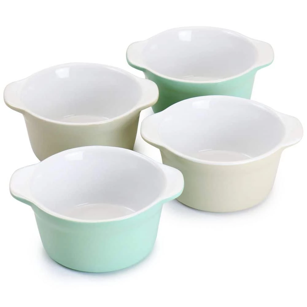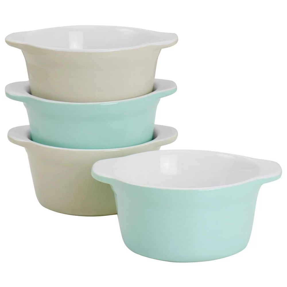 - Set includes: 2 blue and 2 grey 4 in. round stoneware ramekins