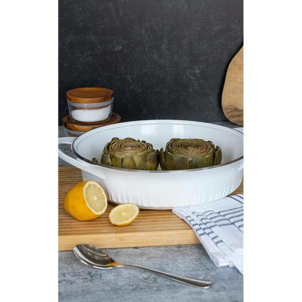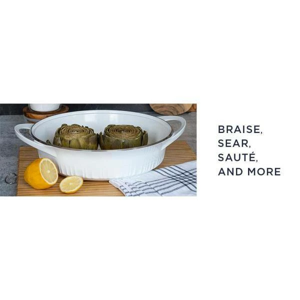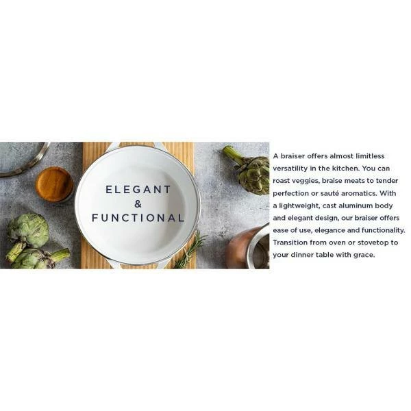 Braise meats and veggies to tender perfection. With its lightweight design and elegant fluted ceramic exterior, this braiser is oven-to-table ready. The non-stick ceramic interior is easy to clean and requires little-to-no maintenance, even after countless use. Made from professional-grade cast aluminum, this braiser offers quality, fast and even heating.
