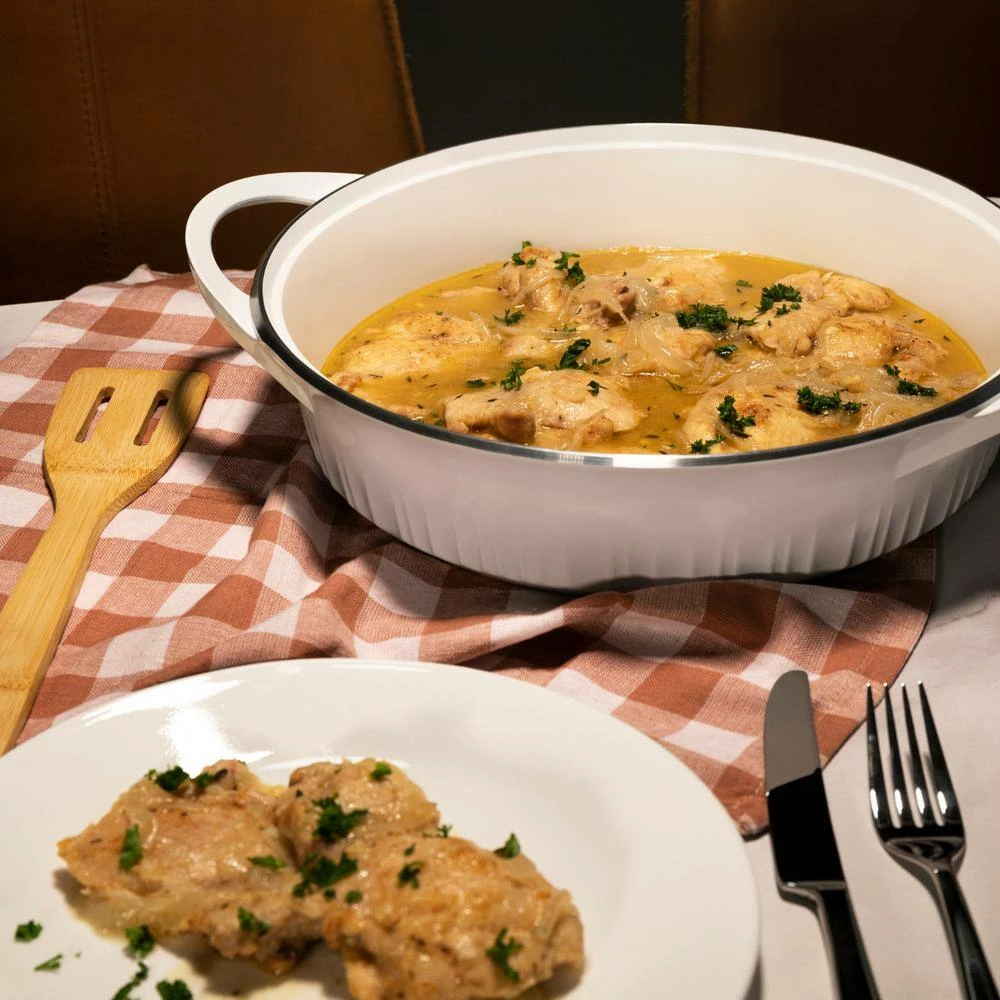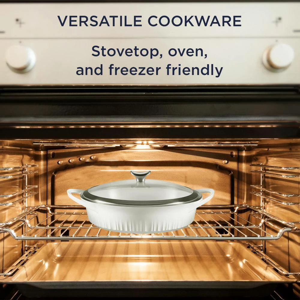 - Versatile, multi-use braiser: gas/electric stovetop and oven safe, refrigerator and freezer friendly.