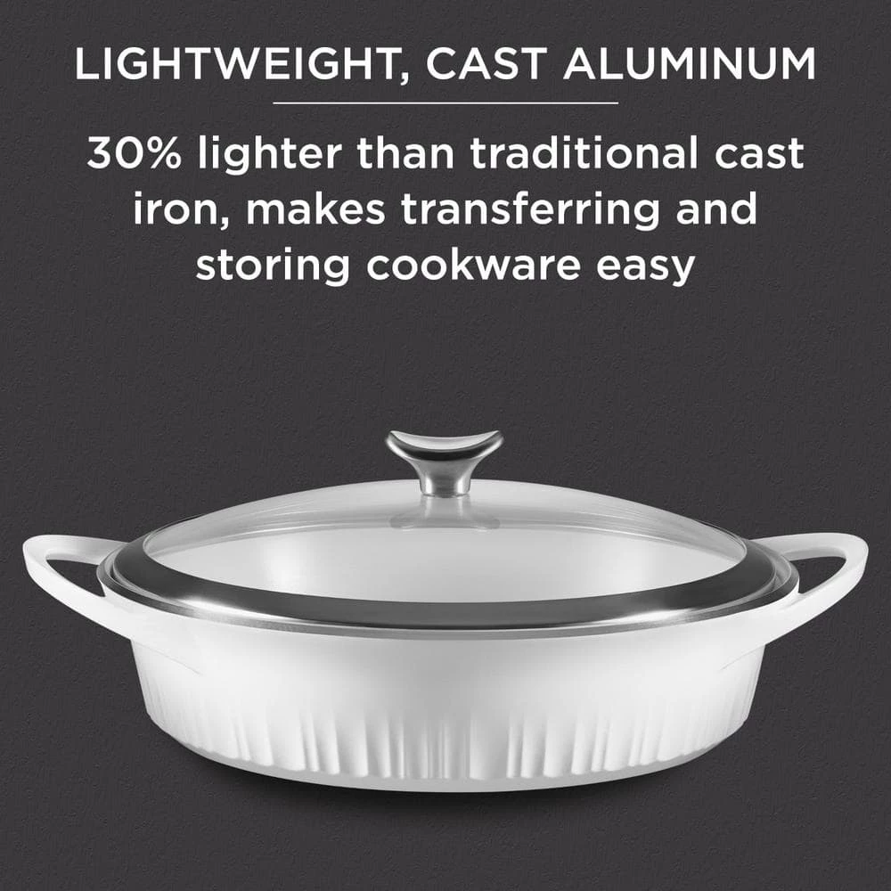 - Lightweight cookware: our cast aluminum cookware is 30% lighter than traditional cast iron, making it easier to store and transport