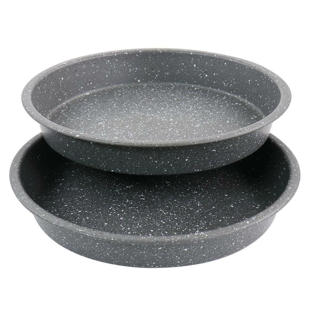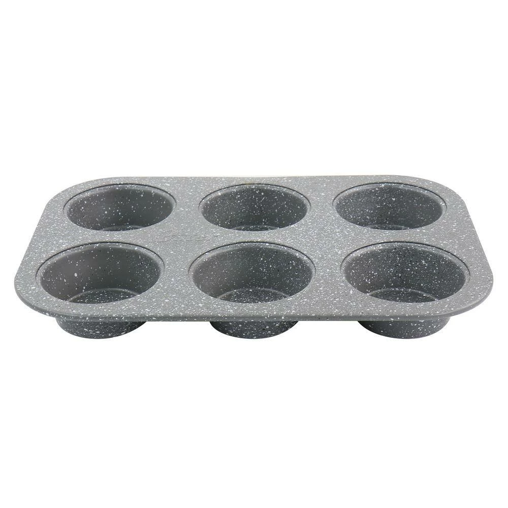 Bake up all your favorite baked goods with the Oster 6 piece bakeware set. Made of strong and durable carbon steel that is built to last. The beautiful greystone texture gives it the classic kitchen feel. Comes complete with 2 round cake pans, 1 six cup muffin pan, 1 loaf pan, 1 cookie sheet, and 1 cooling rack. The non stick feature makes it very easy to bake with easy food release technology. Treat all your guests with all the delicious treats.