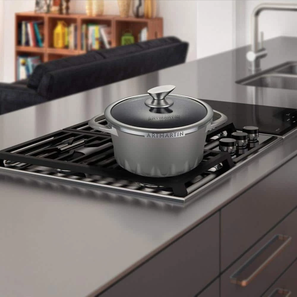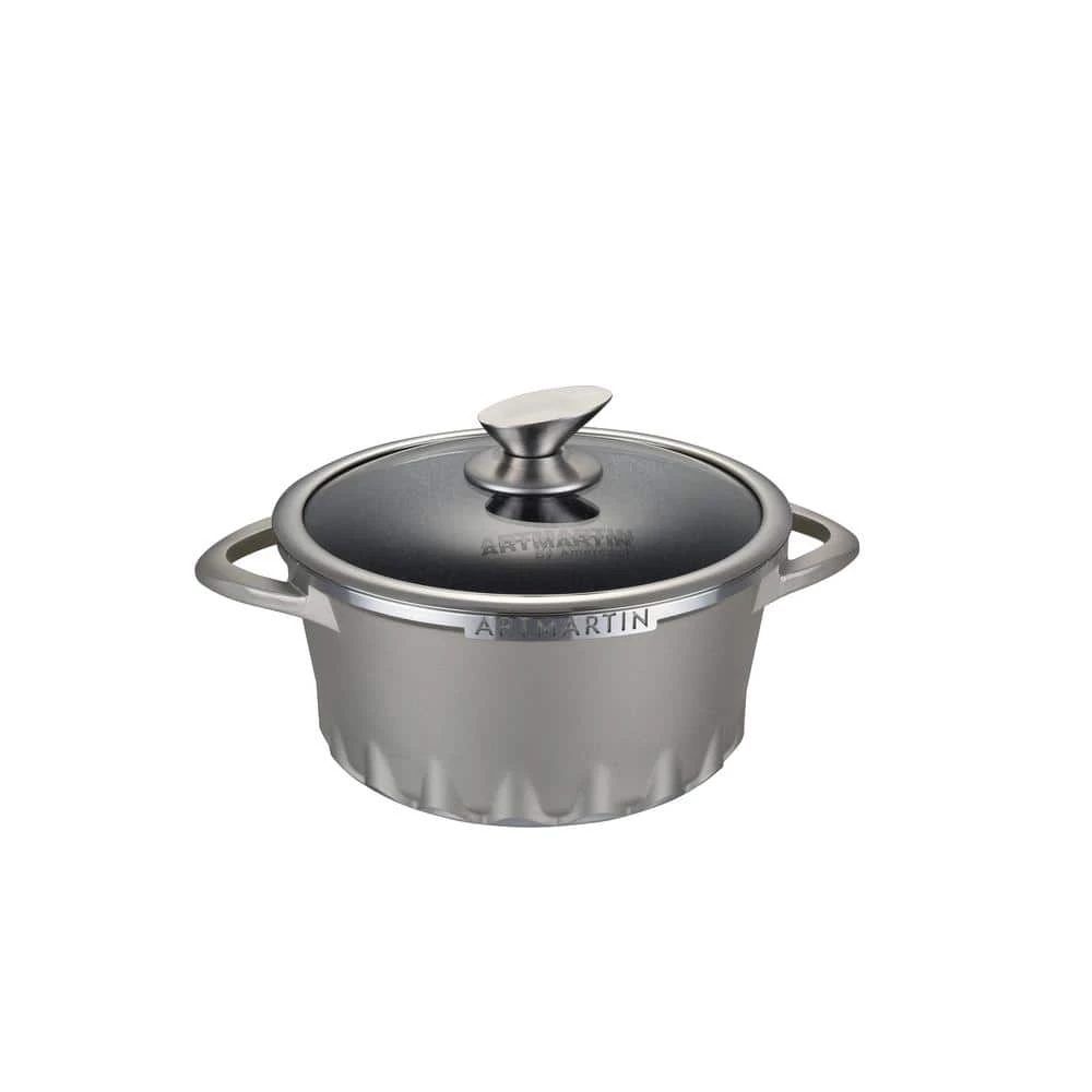Durable, 8.7 in. round casserole with glass lid. The inner construction is pressed aluminum , with the exterior double-coated in textured nonstick coating . Inside, this casserole is covered in a triple layer of rough, matte nonstick coating that gives you the benefits of cooking on stone, while ergonomic design incorporating bake lite keeps the handle cool to the touch. The aluminum construction gives you a sturdy yet beautifully lightweight product compared to cast iron and other metals, making cooking a breeze. What’s more, aluminums energy efficient properties make it ideal for cookware. The metal ensures even heat distribution while the lava stone nonstick coating is scratch resistant , warp resistant, and makes cleaning up simple and easy. Harnessing the advantages of aluminum with the safety and comfort of high-tech stone coatings , this is a serious upgrade on the aluminum pans of days gone by. Our cookware is BPA free, abrasion resistant and corrosion resistant to ensure you many years of stovetop use. Suitable for all hobs and ranges, including induction heating . Hand wash: dishwasher use not recommended. This product comes with a 2-year manufacturer warranty.