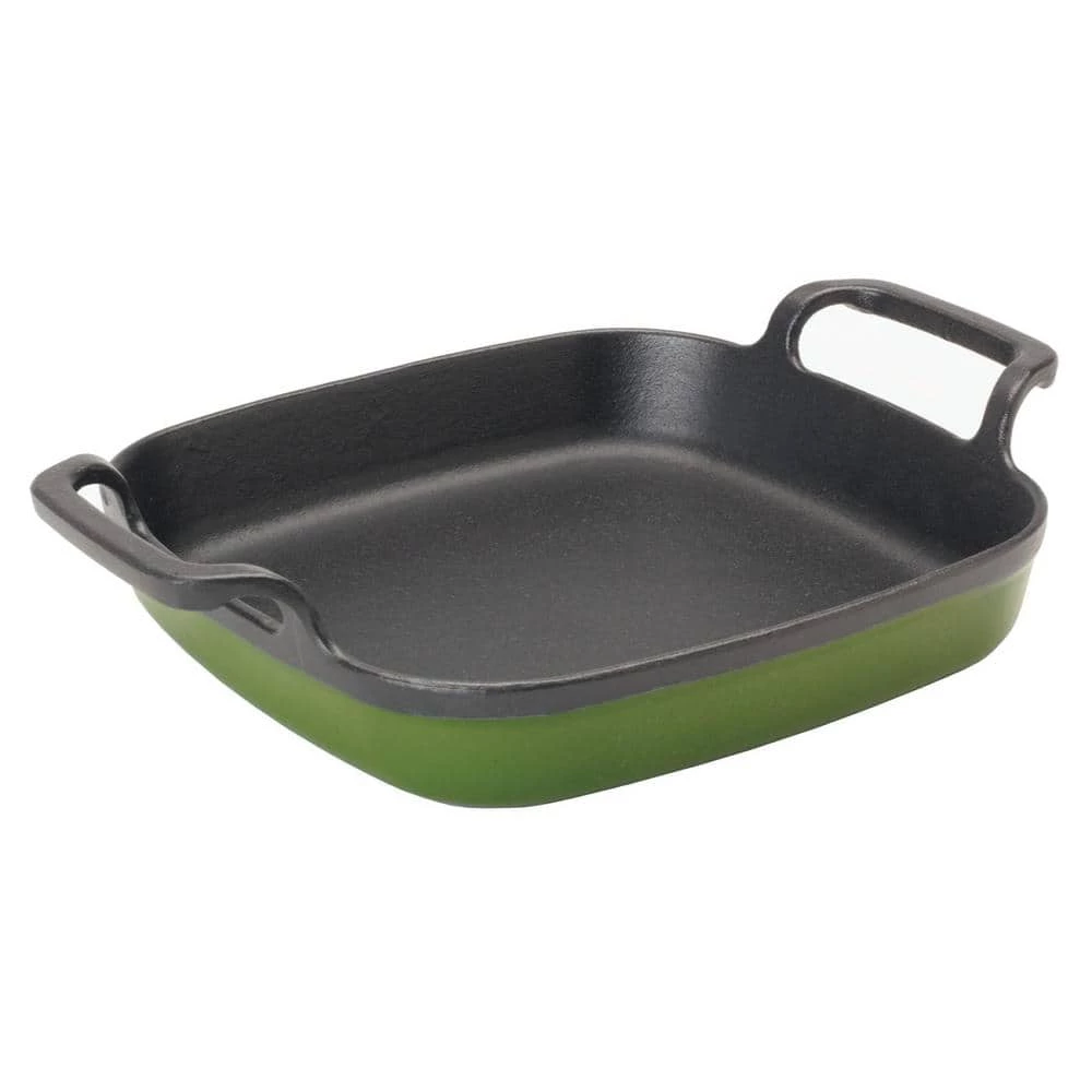 Inspired by natural tones, Bayou Classic Enameled Cast Iron brings touches of the outdoors to the kitchen. This shallow pan is fabulous for oven recipes that require a crisp topping such as vegetable gratins, macaroni and cheese, scalloped potatoes and fruit cobblers. Roast peppers, onions and tomatoes. This dish is also good for stovetop cooking. Enamel exterior and interior surface, sleek design and large loop handles make this an oven-to-table piece, keeping foods warm for serving. Bayou Classic helps to make the kitchen, the heart of the home, a relaxed place to cook, gather and eat.