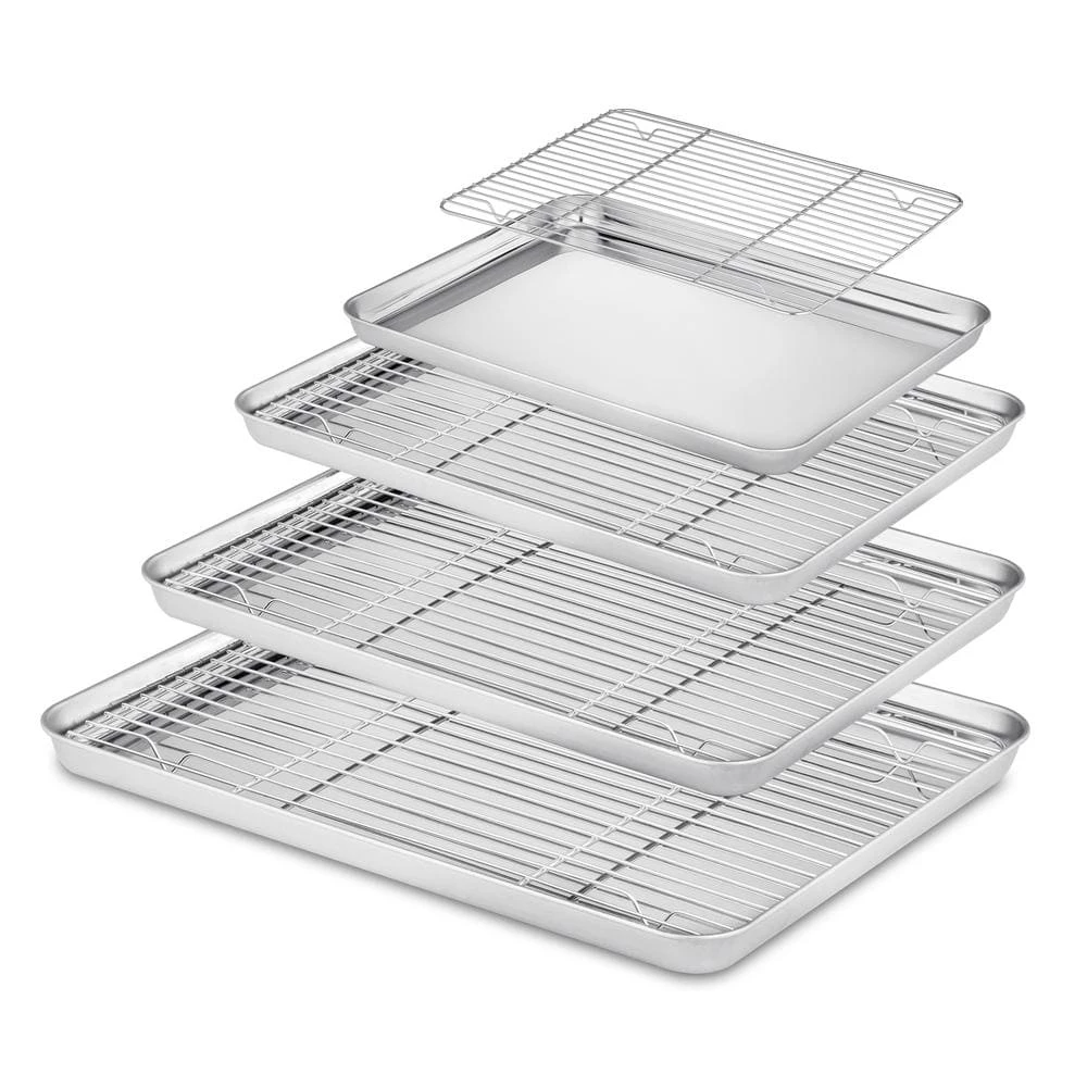 - Our stainless steel baking sheet has superior mirror finish to reduce the risk of food sticking, smooth roll edges make it comfortable to hold and transfer