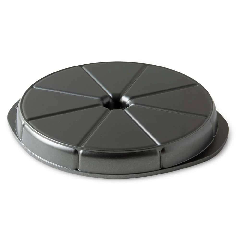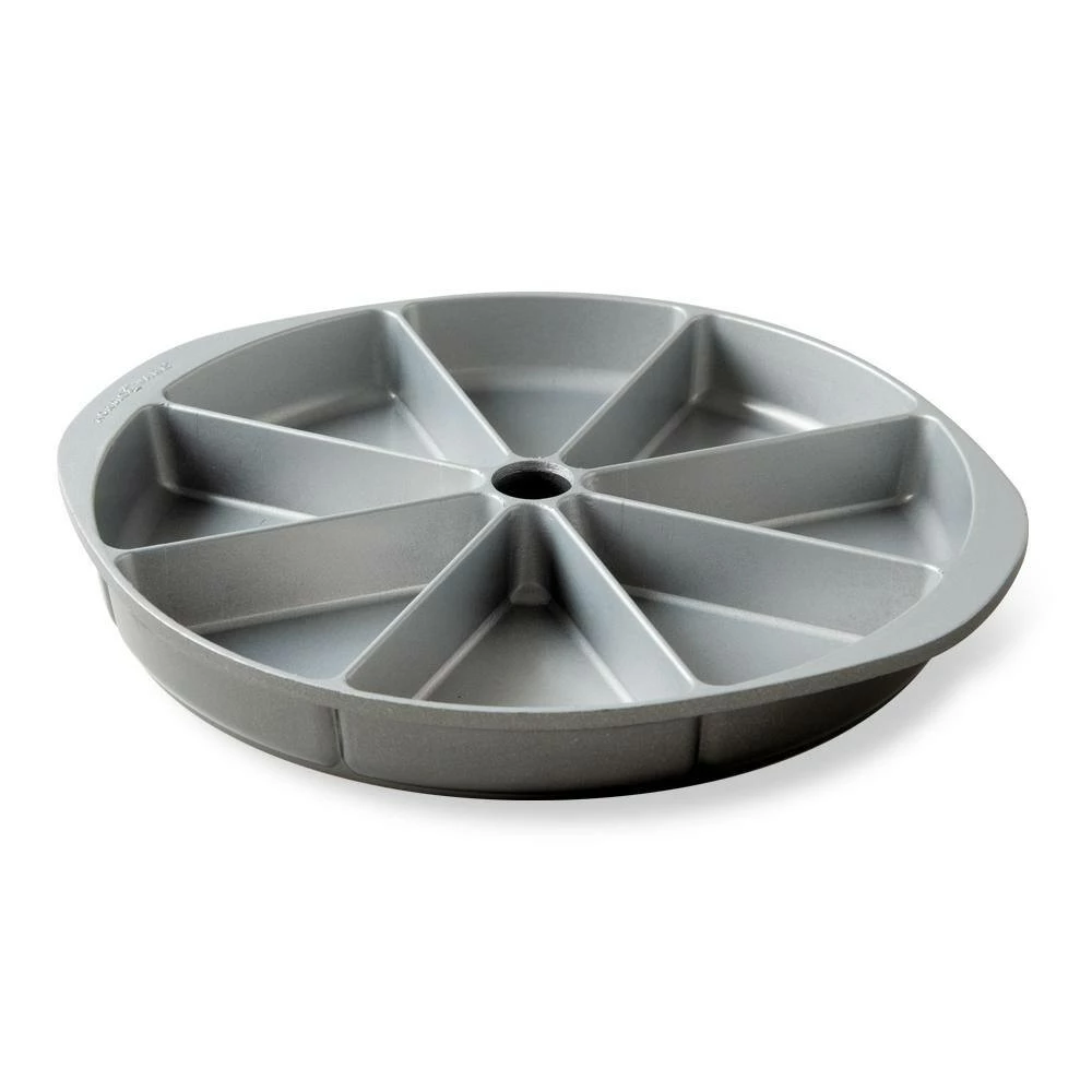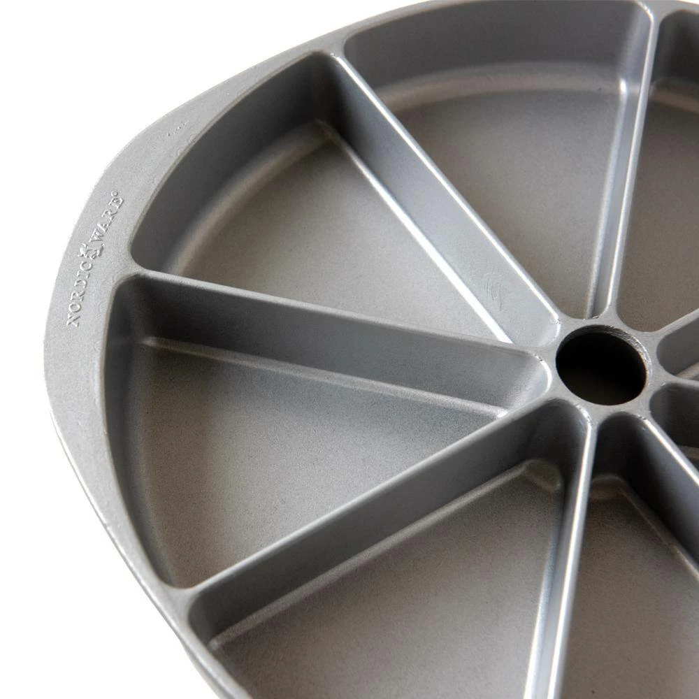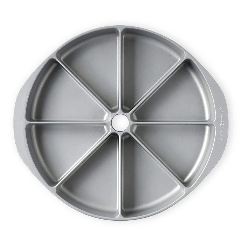 This durable cast aluminum pan turns out eight perfectly shaped wedges every time you bake. Ideal for scones and cornbread. The pan is coated with durable nonstick and cooks quickly and evenly.