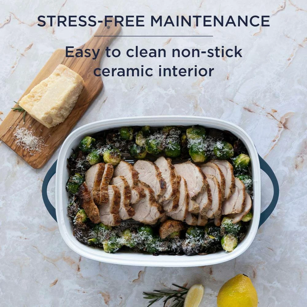 - Versatile, multi-use roaster: stovetop, oven, refrigerator safe and freezer friendly – does not work with induction cooktops