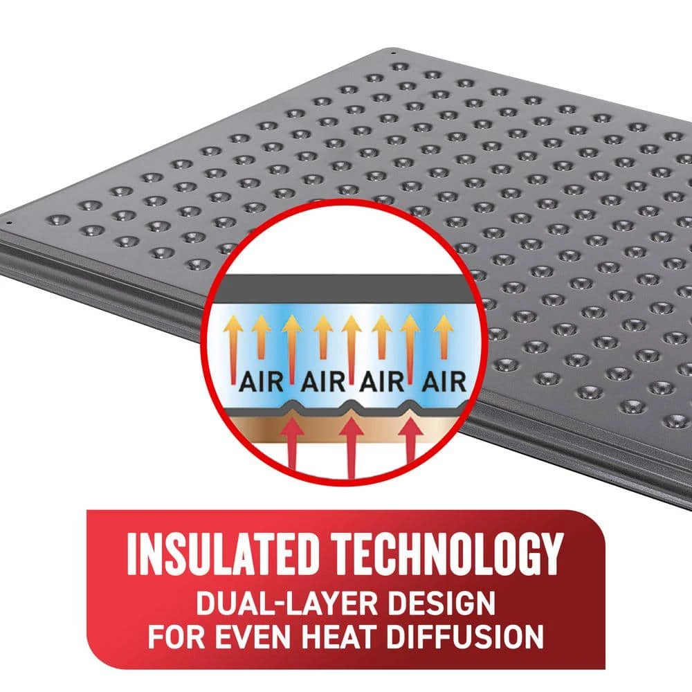 - Airbake Insulated Technology: Dual-layer design for a gradual rise in temperature creates a golden outside and moist inside with no burning