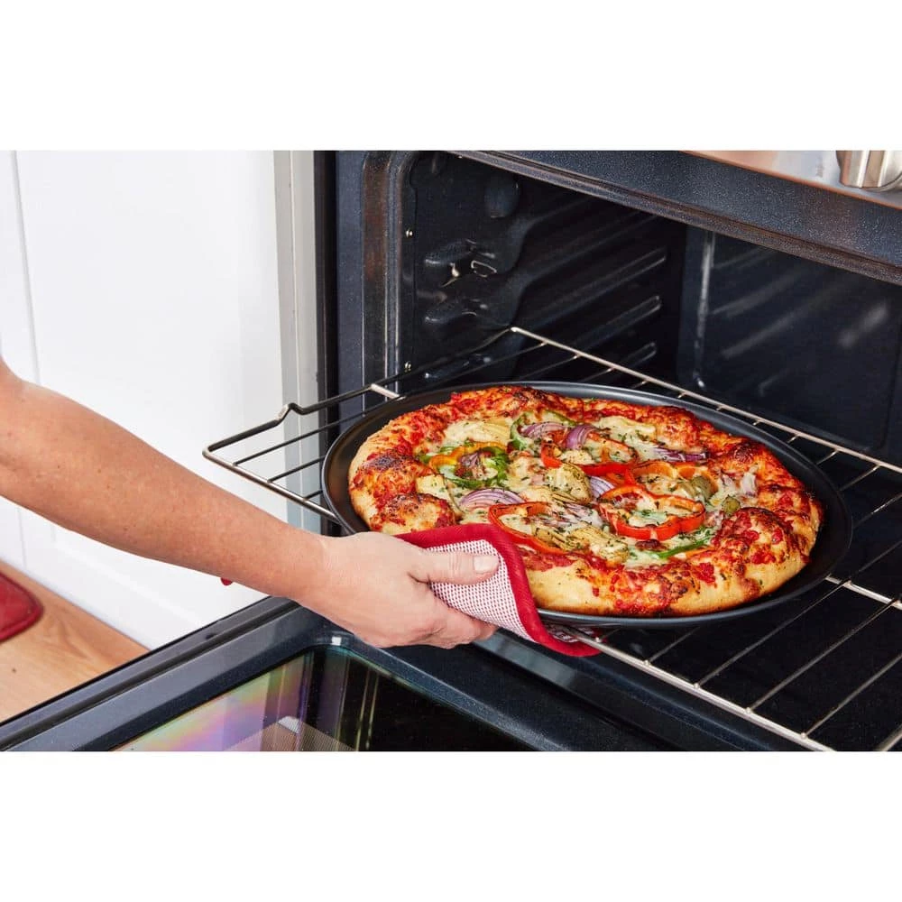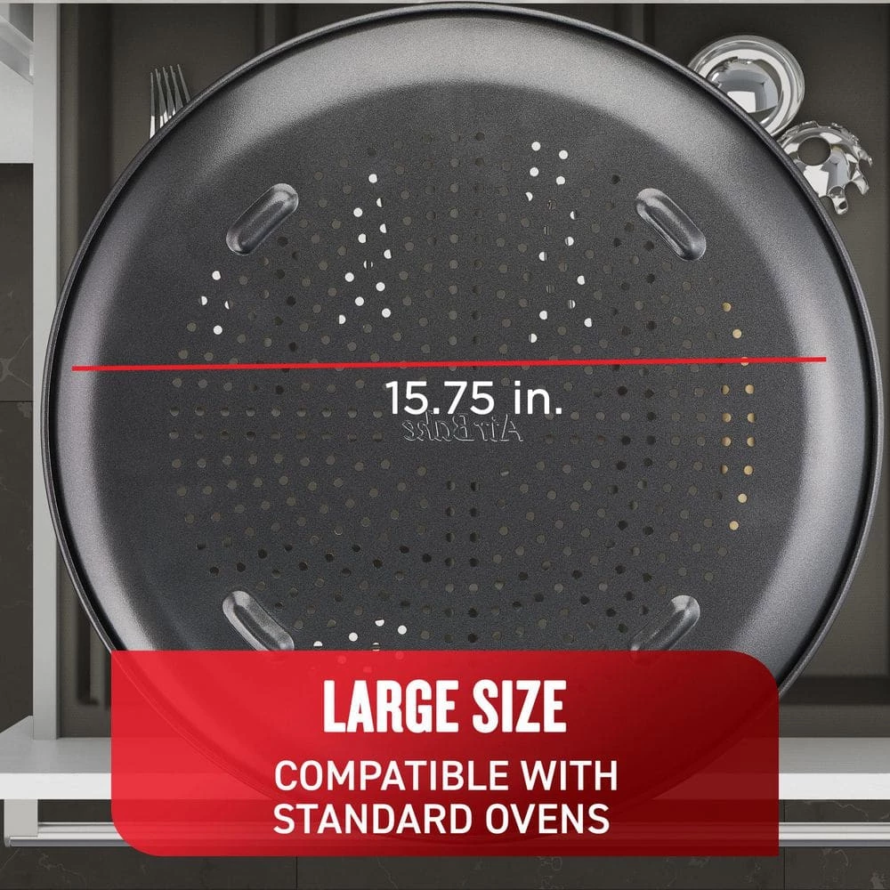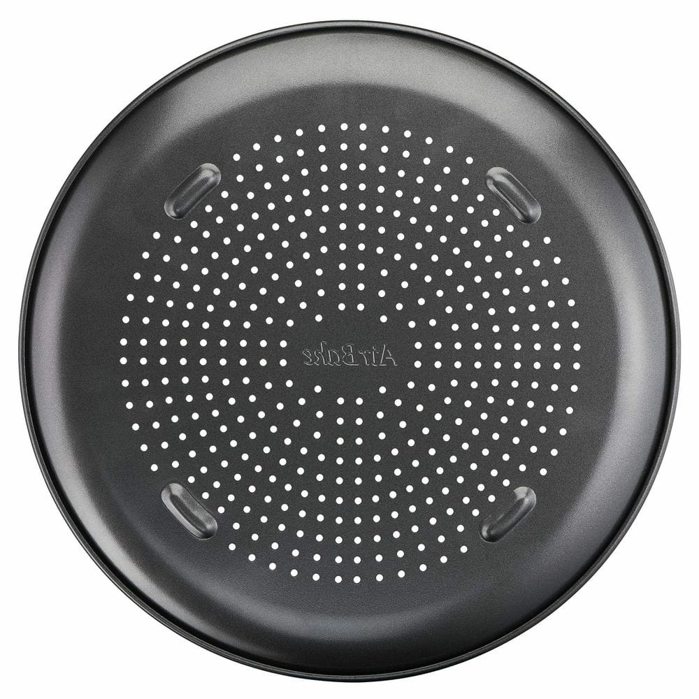 The T fal Airbake Nonstick pizza pan is all you need to cook like a pro, for irresistibly mouth watering pizzas. Achieve professional results with a perforated design that produces a perfect heat diffusion, providing mastered cooking. The non stick coating ensures smooth and effortless removal of your pizzas, while durable high quality materials provide performance you can count on day after day. Experience flawless results on all your favorite pizzas. With a convenient dishwasher safe design, Airbake is the ultimate pizza pan for delicious pizzas baked to perfection.