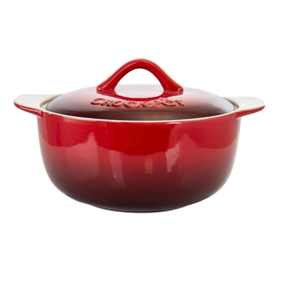 Slow simmer a flavorful stew or bake up a new creation with the versatile Crock-Pot Artistan 2-Piece 2.3 Quart Round Stoneware Casserole with Lid in Red. Made of quality stoneware with a beautiful glossy finish, it looks great in the kitchen or on the table. The Artisan cookware series is an updated American classic that every home needs. Cook delicious meals with this versatile Casserole which distributes and retains heat evenly. Effortlessly take it from the stove-top to the oven, the dining table, and then store leftovers in the refrigerator. Create an array of dishes as you slow cook, stew, simmer, and bake delightful dishes for guest to enjoy.