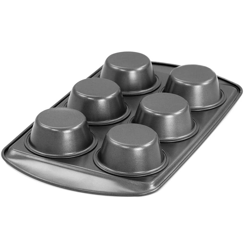 The Gibson Baker’s Friend 6-cup muffin pan is an essential baking-piece that is perfect for small batches. Bake your favorite muffins,-cupcakes, egg-cups, and more. With 6-cup capacity, this pan is perfect for when you want to prep breakfast for the week, or when you need a little treat for your family and don’t want to wash your big bakeware pans. Compact size is easy to store and lightweight steel construction is durable for long lasting use. Nonstick coating is easy release and makes clean up a breeze. Hand wash recommended.