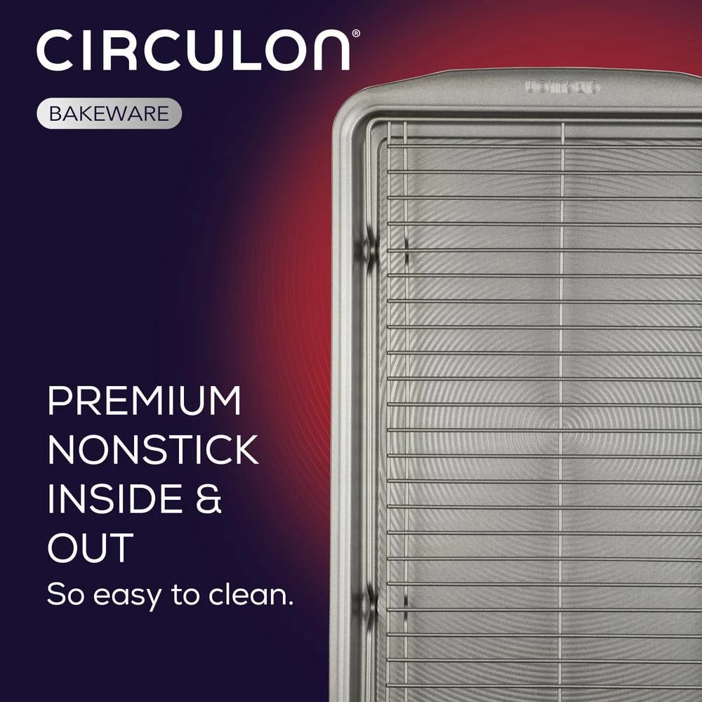 - HIGH PERFORMANCE BAKING SHEET: Enjoy baking cookies, sheet pan dinners, fish and chips and more with this baking pan from Circulon that features nonstick engineered to last twice as long as normal nonsticks
