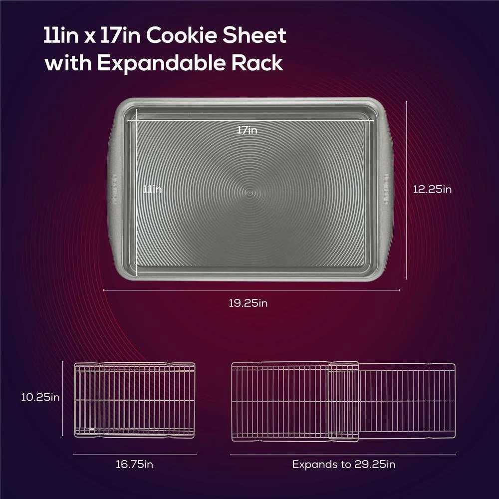 - BAKING PAN SET INCLUDES: 11-inch x 17-inch baking sheet, 2-in-1 cooling racks