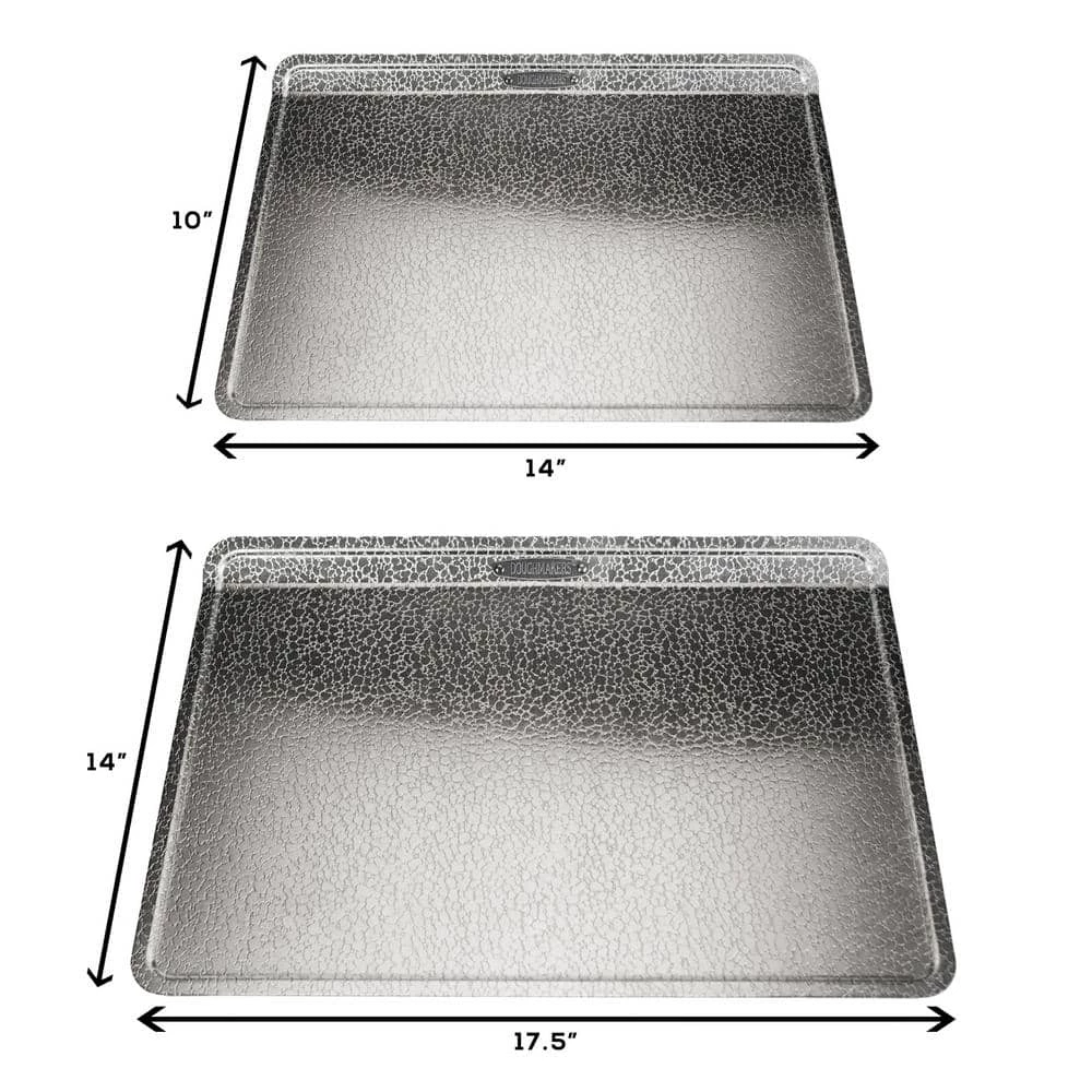- Premium quality 18-Gauge aluminum baking pan, the choice of professional bakers; heat safe to 428F (220 C) 10 in. x 14 in. x 0.5 in. cookie sheet