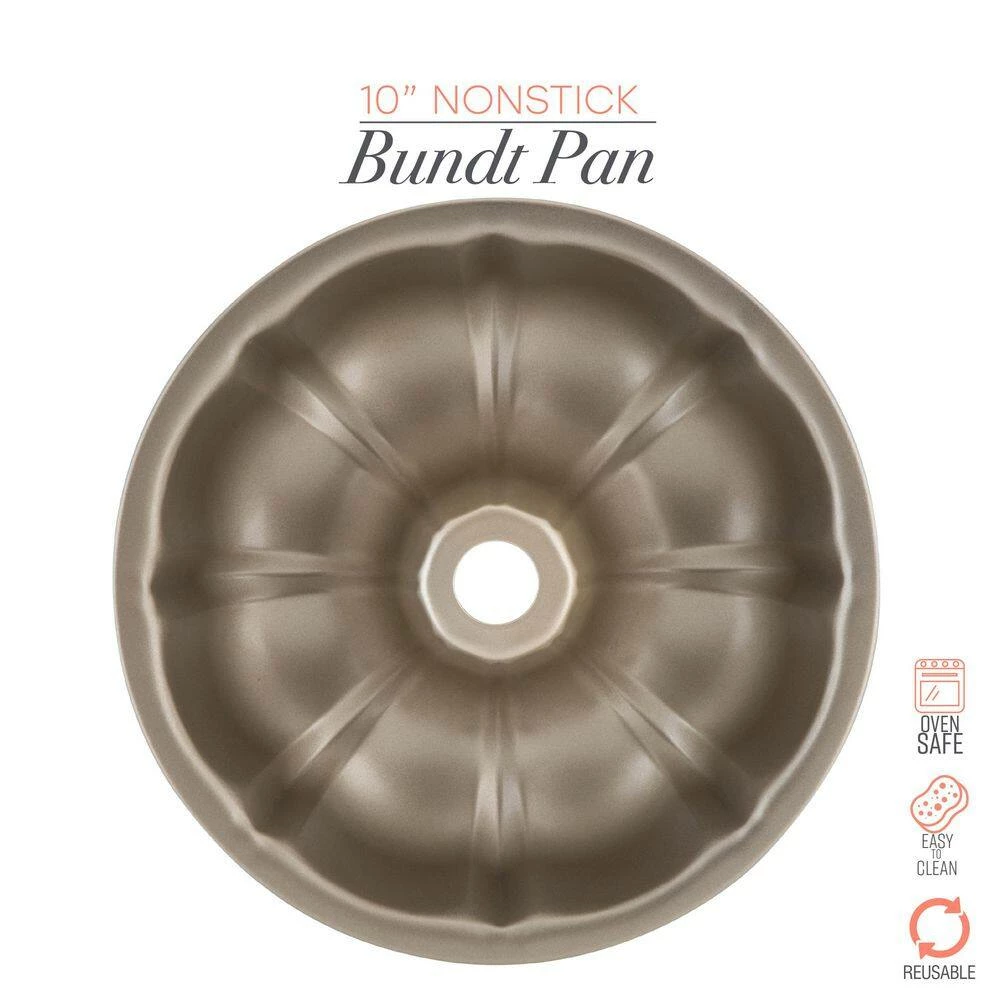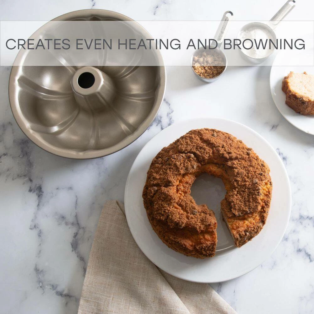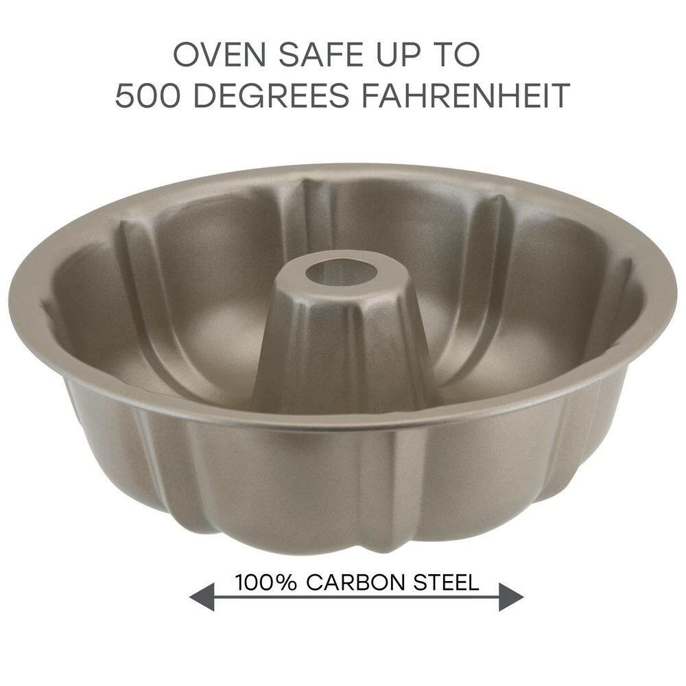 This Bundt Pan makes the best cakes. This pan is made of durable carbon steel for long lasting use. The pan conducts heat evenly for the best cooking results. The cake will cook golden and evenly in the oven. The shape of the pan makes for a beautiful design of the Bundt cake when it is done baking. The nonstick surface makes for an easy release and is also easy to clean. Pro Series Bundt Pan is the best pan for your kitchen.