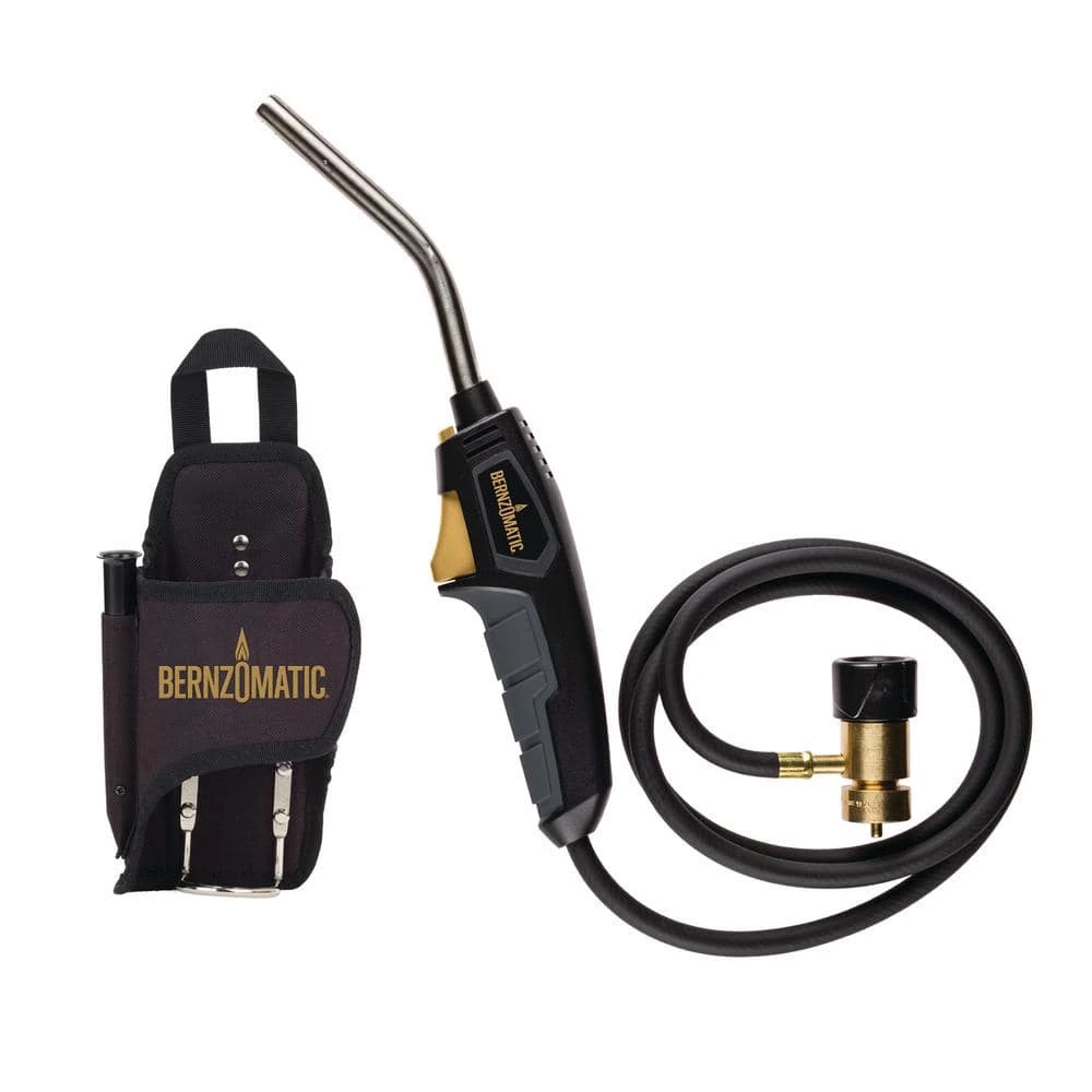 Access hard-to-reach large diameter brazing, soldering and heat treating jobs with the MAP-Pro Hose Torch. It has a hose for maximum accessibility, an auto start/stop ignition and a run-lock button that delivers continuous use. The optimized swirl flame provides hot, efficient heat and fast soldering times.