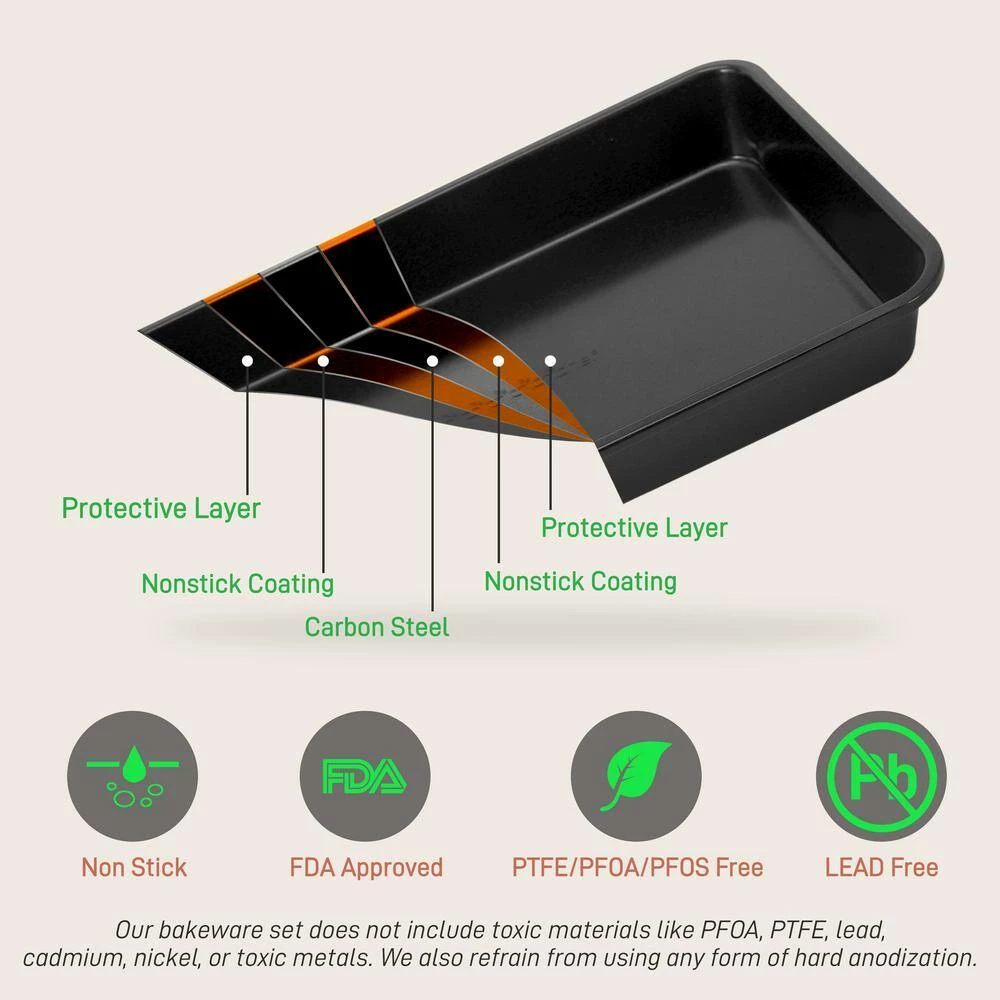NutriChef was created on the principle that healthy home cooking should be attainable to all, regardless of skill level and economic status. Starting in 2014, we noticed the disconnect in our lives and in the lives of those around us. We were so busy, always rushing forward, and our health and personal lives suffered. We needed to find some way to slow down and put our health first, all without sacrificing convenience or taste. Could we somehow create healthier versions of our favorite foods, easily in our own kitchens. The answer was a resounding yes, and NutriChef was born. Kitchen Oven Baking Pans – Carbon Steel, Non-Stick Black Coating Inside & Outside Bake Tray Sheet Bakeware Set (6-Pieces).