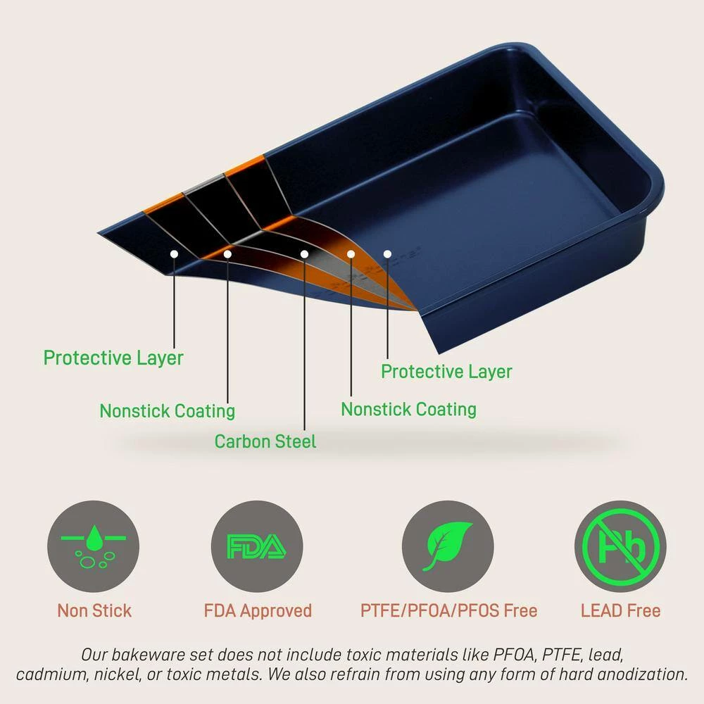 NutriChef was created on the principle that healthy home cooking should be attainable to all, regardless of skill level and economic status. Starting in 2014, we noticed the disconnect in our lives and in the lives of those around us. We were so busy, always rushing forward, and our health and personal lives suffered. We needed to find some way to slow down and put our health first, all without sacrificing convenience or taste. Could we somehow create healthier versions of our favorite foods, easily in our own kitchens. The answer was a resounding yes, and NutriChef was born. Kitchen Oven Baking Pans – Carbon Steel, Non-Stick Blue Diamond Coating Inside and Outside Bake Tray Sheet Bakeware Set 6-Pieces.