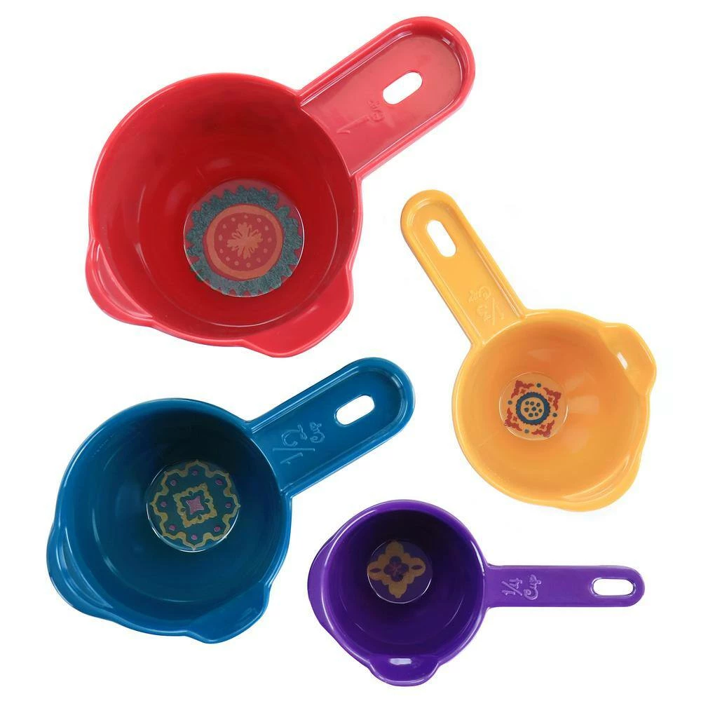 - Set Includes: Four measuring cups in assorted colors (1/4 cup, 1/3 cup, 1/2 cup and 1 cup)