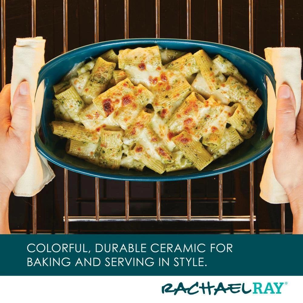 Double your brown and bubble and grab hold of the tops in ceramic style and durability with the Rachael Ray Ceramics Bubble and Brown 2-Piece Oval Baker Set. Prepare tasty and easy casseroles, sweet fruit crumbles and other desserts in these sturdy ceramic stoneware bakers that conveniently go from oven to table. The bakers are an extension of the bold, clever style Rachael Ray has already brought to cookware and dinnerware: bright color, unique shape and top materials in versatile pieces everyone will appreciate. The bakers in two essential sizes boast sturdy ceramic construction, and are safe for use in the microwave, freezer and oven up to 500F. And to make cleaning up a cinch, the bakers go right in the dishwasher. Wide handles offer a confident grip when pulling a piping hot casserole out of the oven, and the vibrant color is great for coordinating with many other Rachael Ray kitchen pieces. Bake tasty casseroles and sweet desserts with ease, with the vibrant, stylish Rachael Ray Ceramics Bubble and Brown 2-Piece Oval Baker Set.