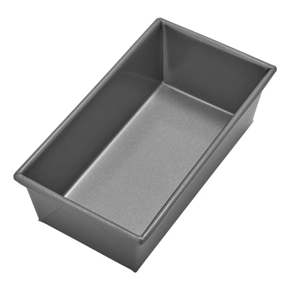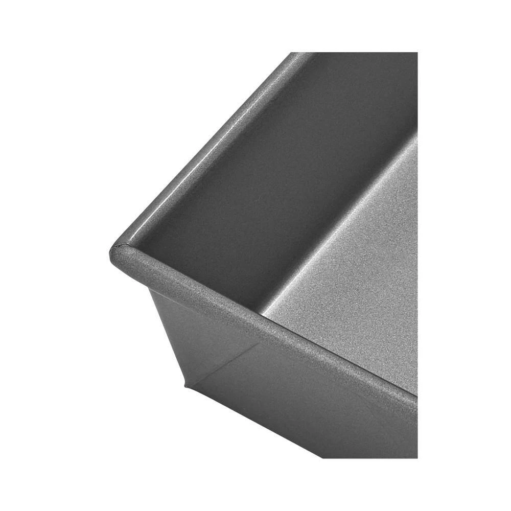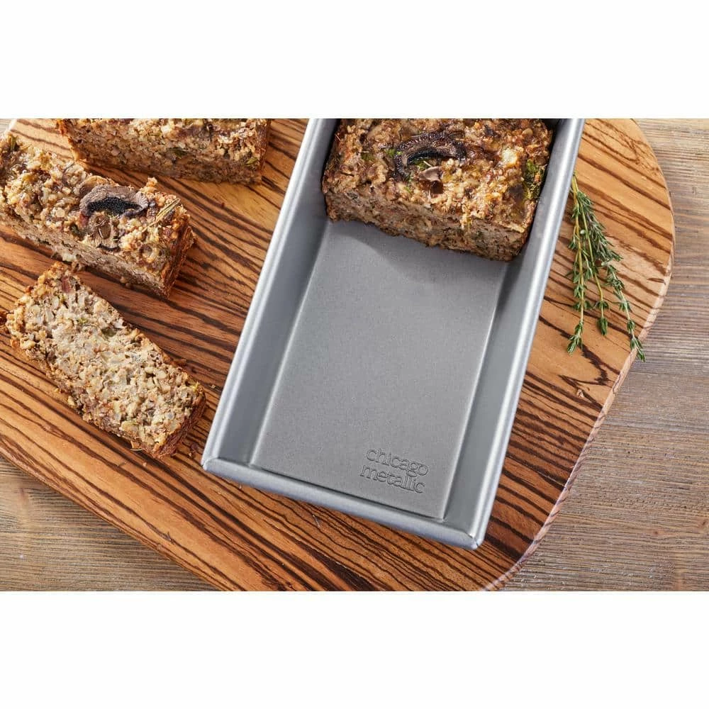 This Chicago Metallic Commercial II 1 lb. Loaf Pan is made of heavy-weight aluminized steel for superior heat conduction and even baking results. Features folded corners and wire rod reinforcement to prevent warping. The easy release, non-stick coating provides ease in baking and clean-up. Dishwasher, freezer and oven safe. Loaf pan measures 9 in. long x 5 in. wide x 2-3/4 in. high.