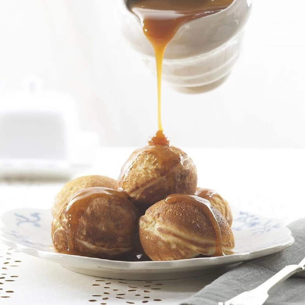 A Danish breakfast specialty, Ebelskivers are traditionally filled with apples but are equally delicious when filled with chocolate, peanut butter, cheese, fresh fruits, or savory ingredients such as bacon or ham. Ebelskivers make great appetizers, too: try a cornmeal batter and fill with cream cheese and jalapeno bits. While they may look daunting to make, the art of preparing Ebelskivers is quite simple. Always use plastic or wooden utensils to flip them as they cook to maintain the integrity of the nonstick on your pan. You will not be disappointed with this product, one of Nordic Ware’s original items that has survived the test of time.