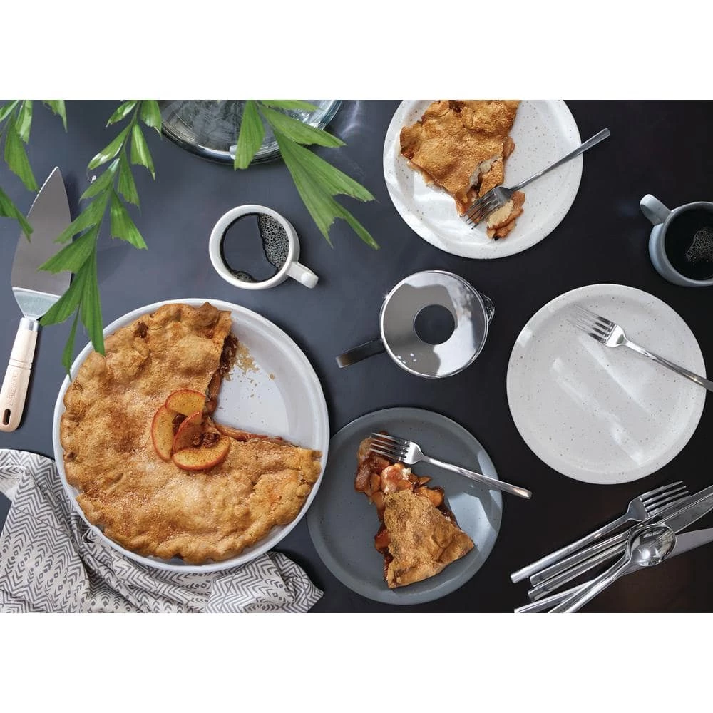 Little Jack Horner, eat your heart out. Our generously proportioned 9-deep dish pie dish accommodates your deep-dish fruit pies or savory pot-pies. Chantals exceptionally strong, non-porous glaze wont react with foods or flavors. You can slice and serve directly from this dish, without worrying about scratches. Crafted to ensure excellent heat distribution, our pie dish promotes even baking. We hand-sand the base for a smooth, no-scratch surface. It cleans easily in the dishwasher and is oven, microwave and freezer safe. 1 Qt. capacity. All Chantal ceramics are lead and cadmium safe and meet FDA and CA Prop 65-requirements.