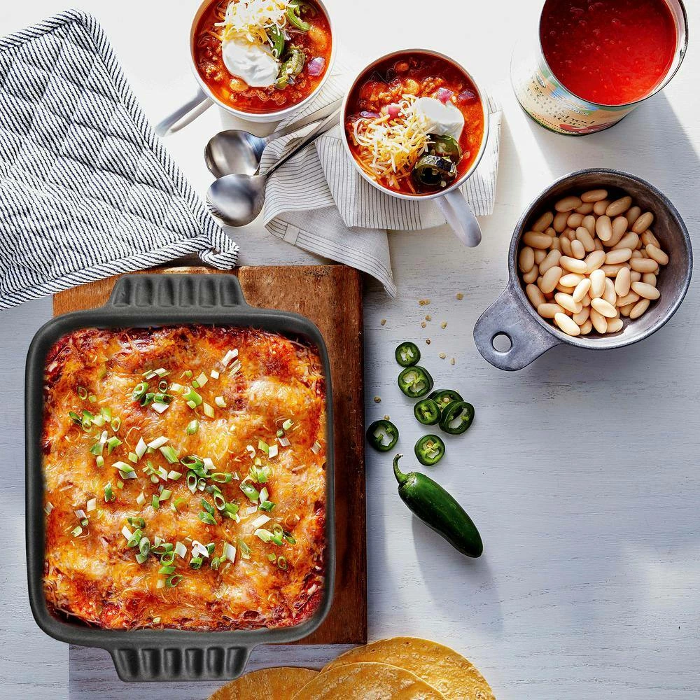 Bring your culinary creations to life with the Denhoff 8 in. rectangular casserole dish in red. This non-stick stoneware is perfect for making a meal for the whole family or just a healthy treat for yourself and friends. This piece has ribbed sides for a sleek look and has contoured handles for easy gripping when hot.